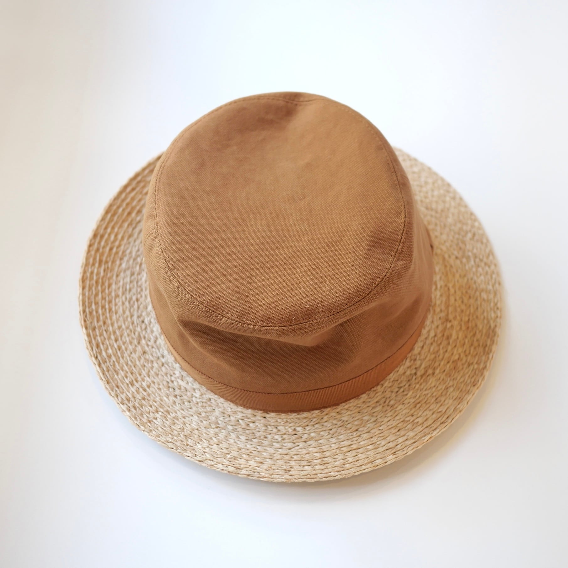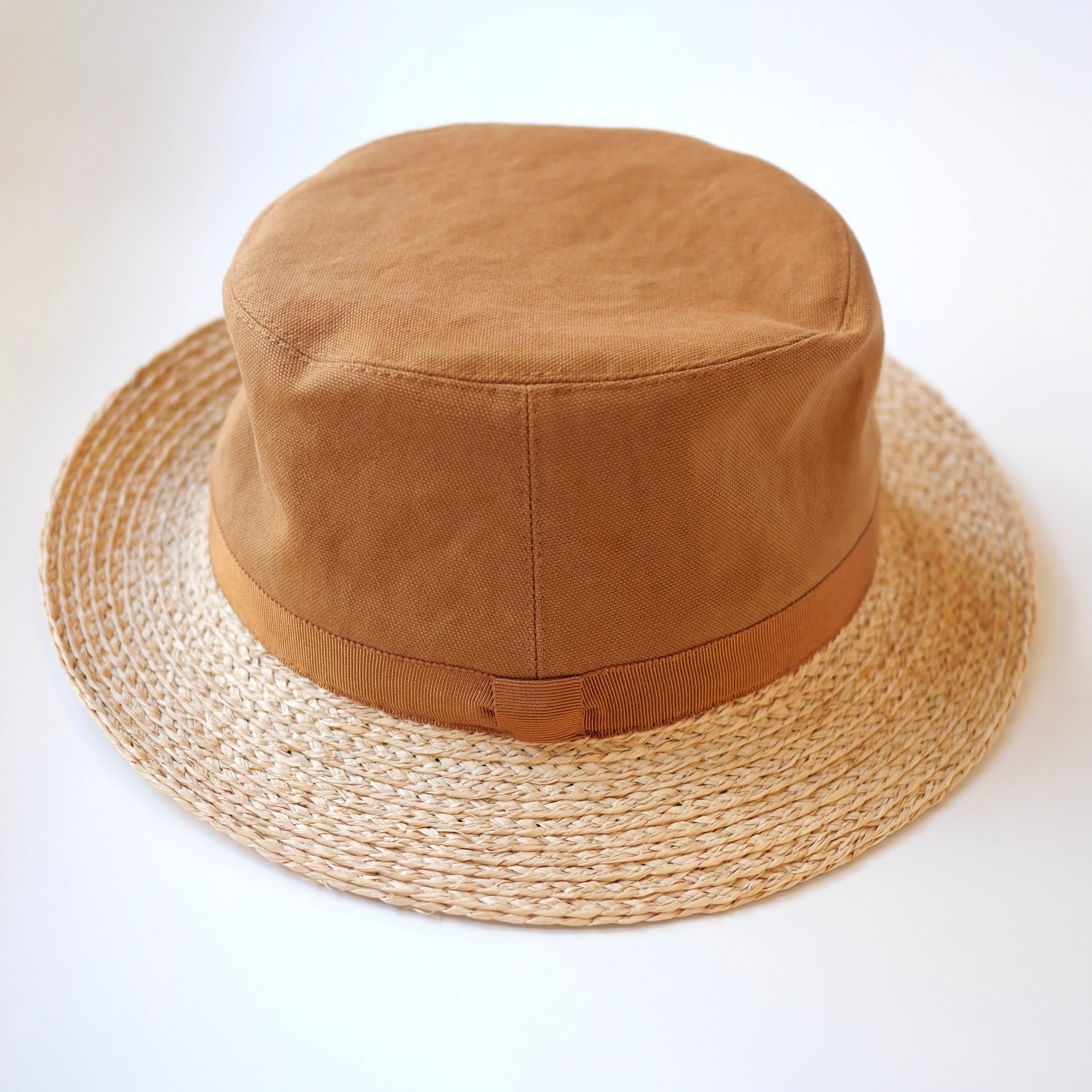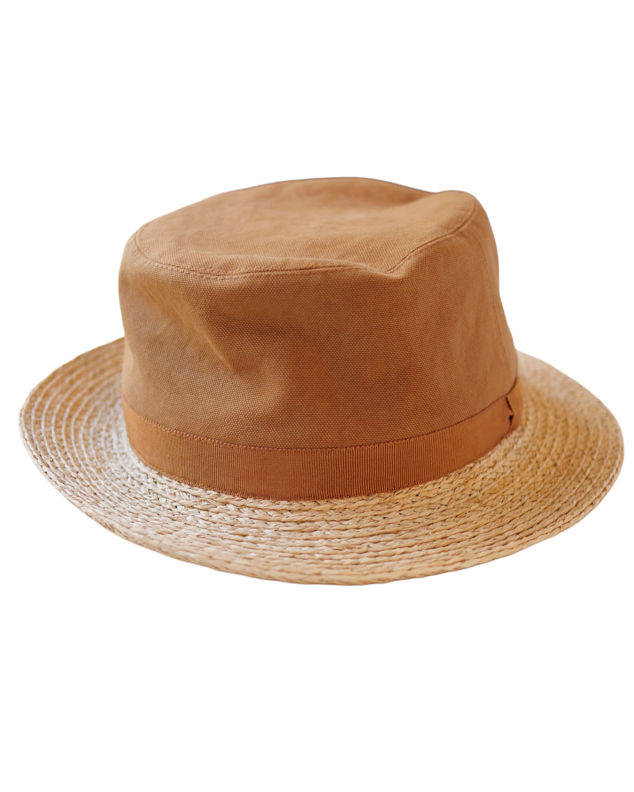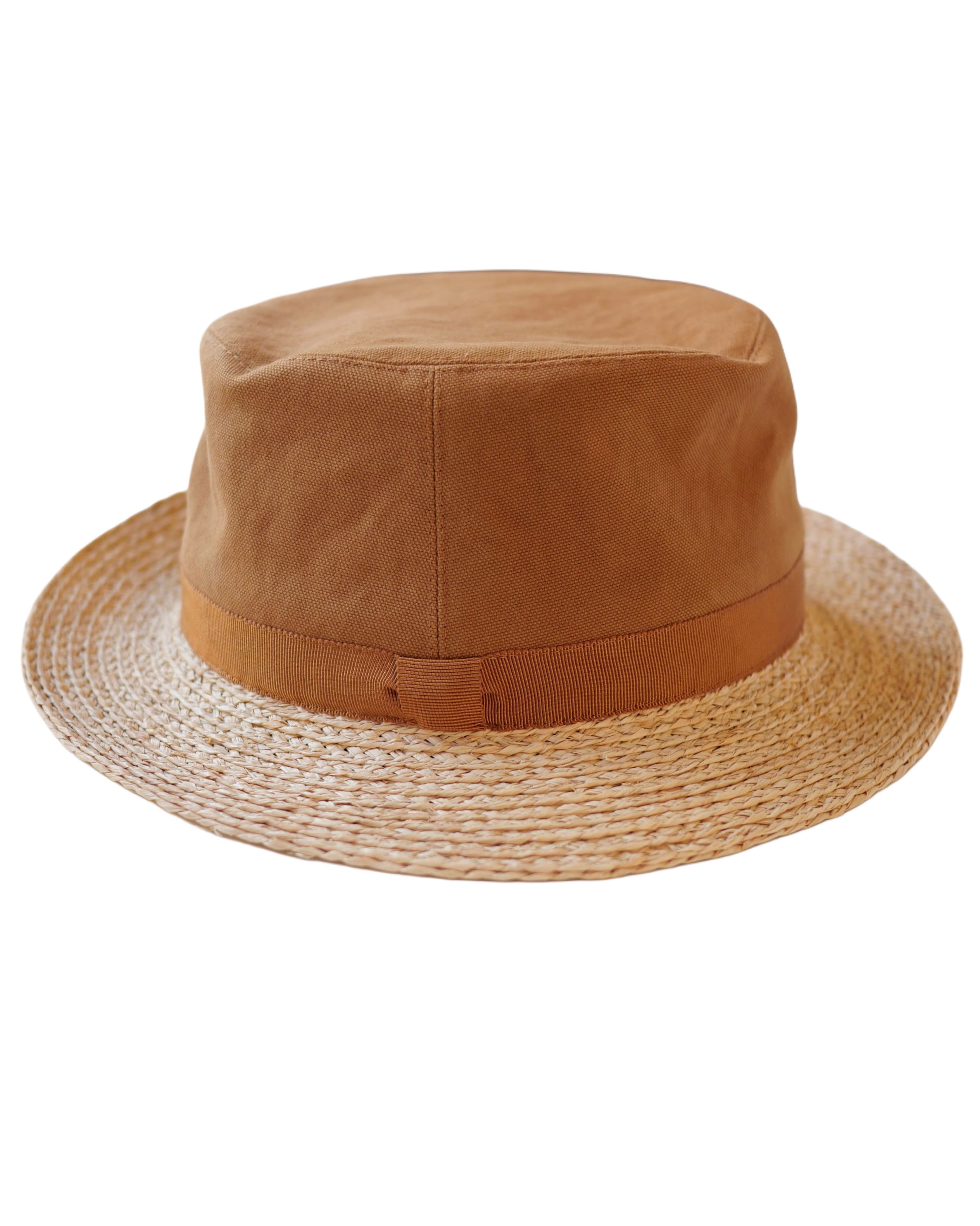 ラフィアとコットンキャンバス生地を使ったハットです。日本製の帽子ブランド「Sashiki 」の新作です。