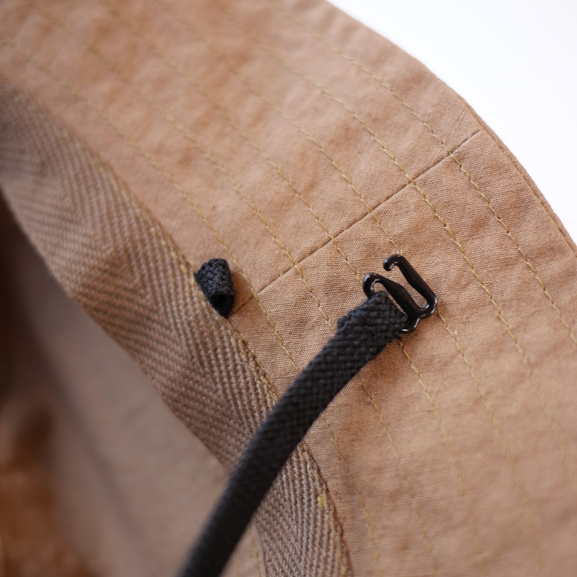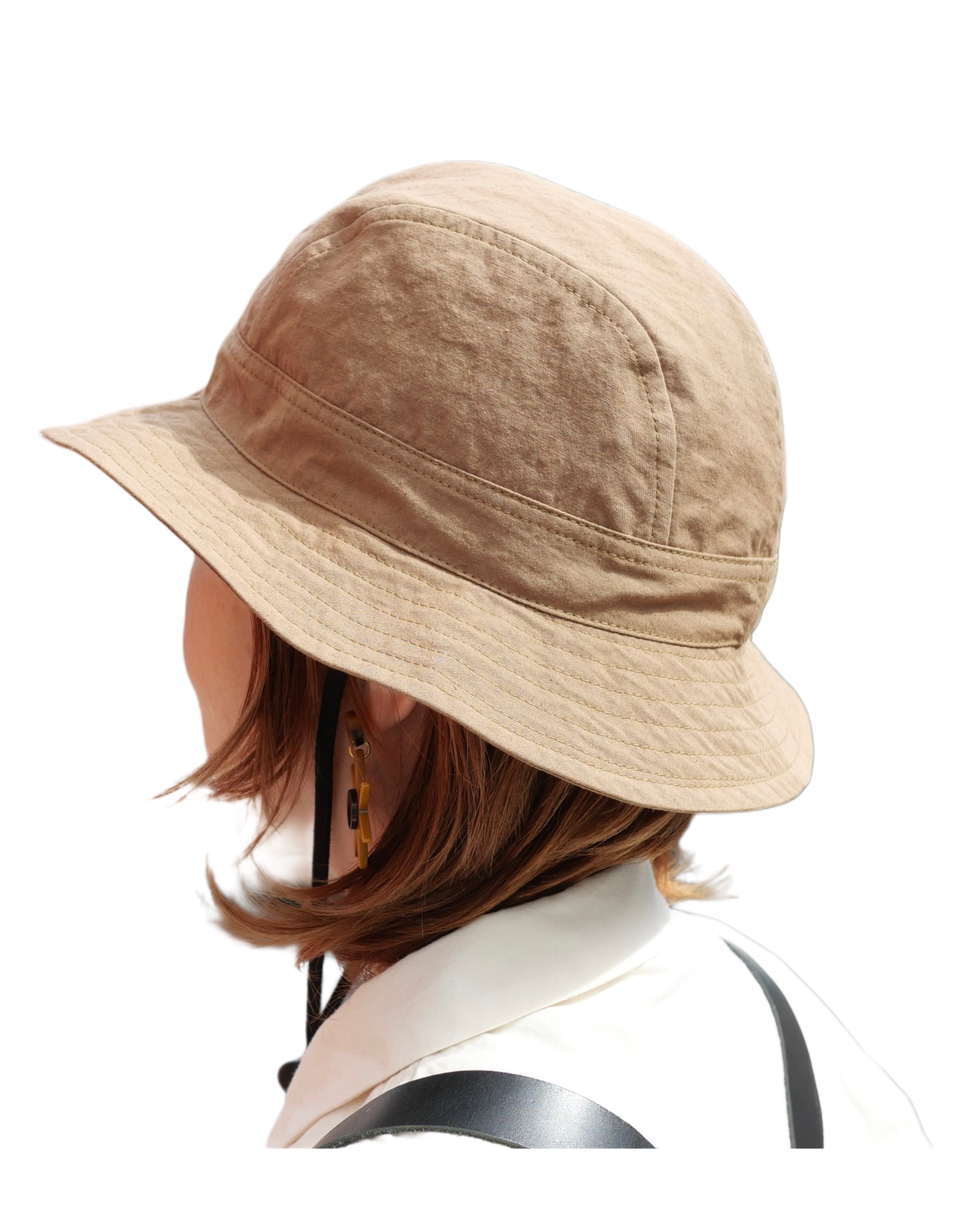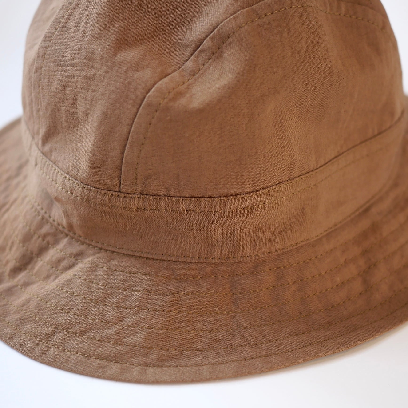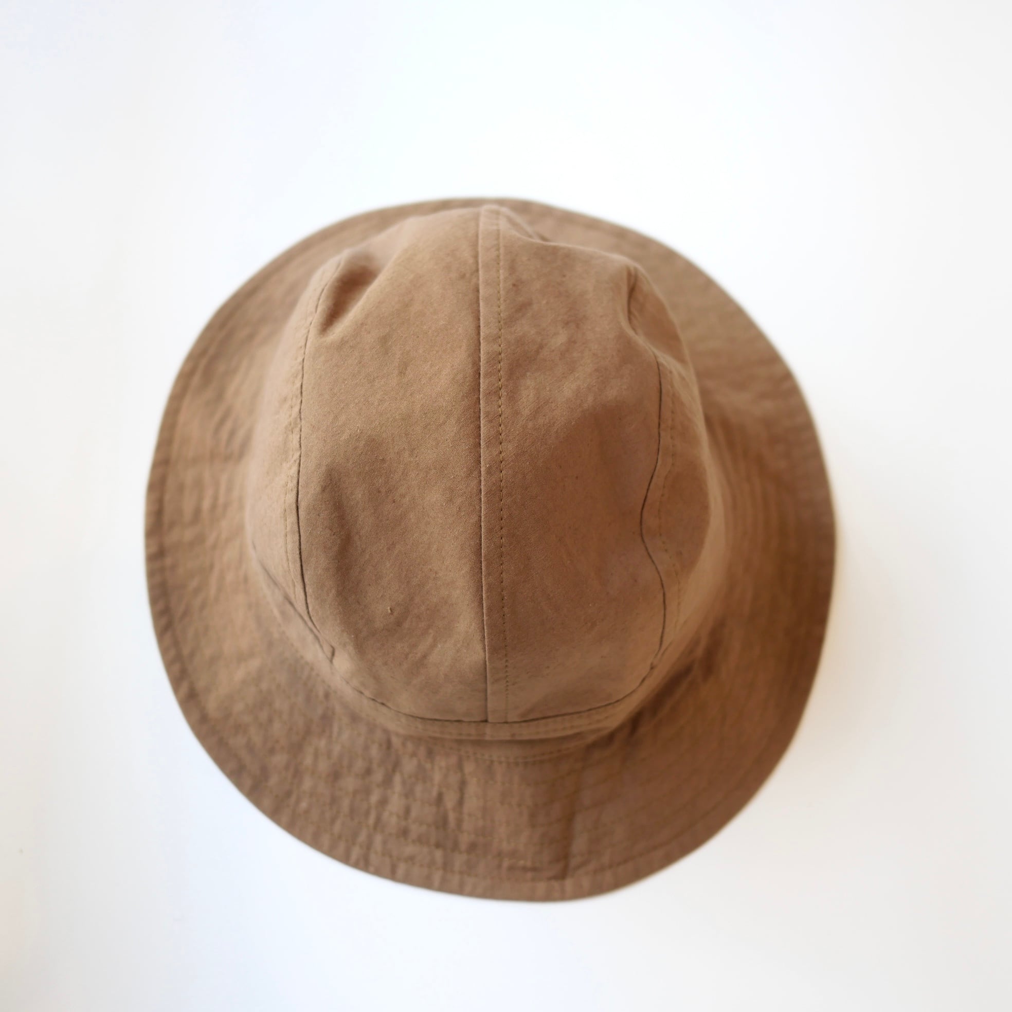 Sashiki オリジナルの4枚パネルのサファリハットです。ツバが大きすぎず、アウトドアなイメージを抑えています。コットンヘンプ生地を使用していますので、蒸れにくく、軽やかな被り心地です。バッグやポケットにサッと入れてオールシーズン使えるのが嬉しいアイテムです。