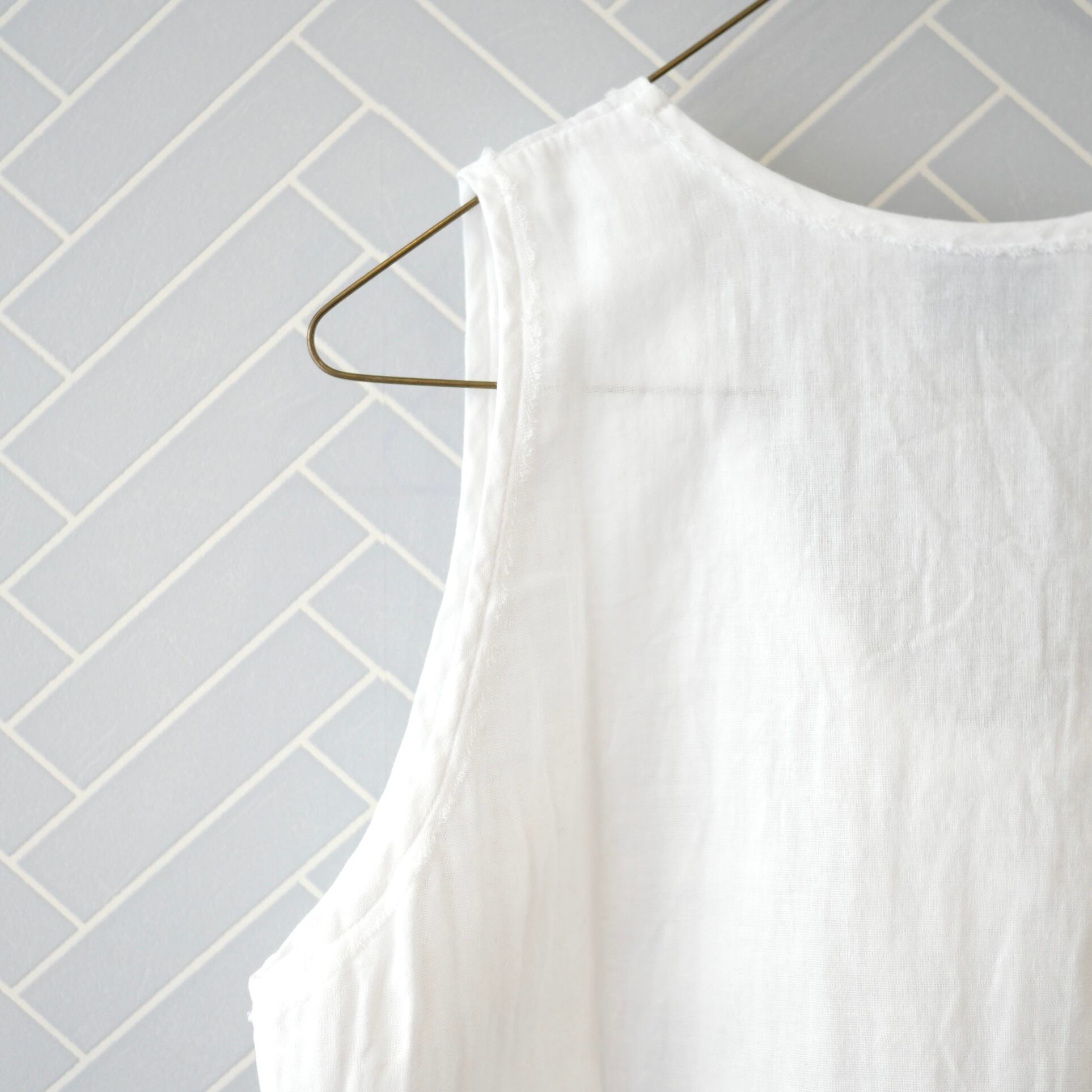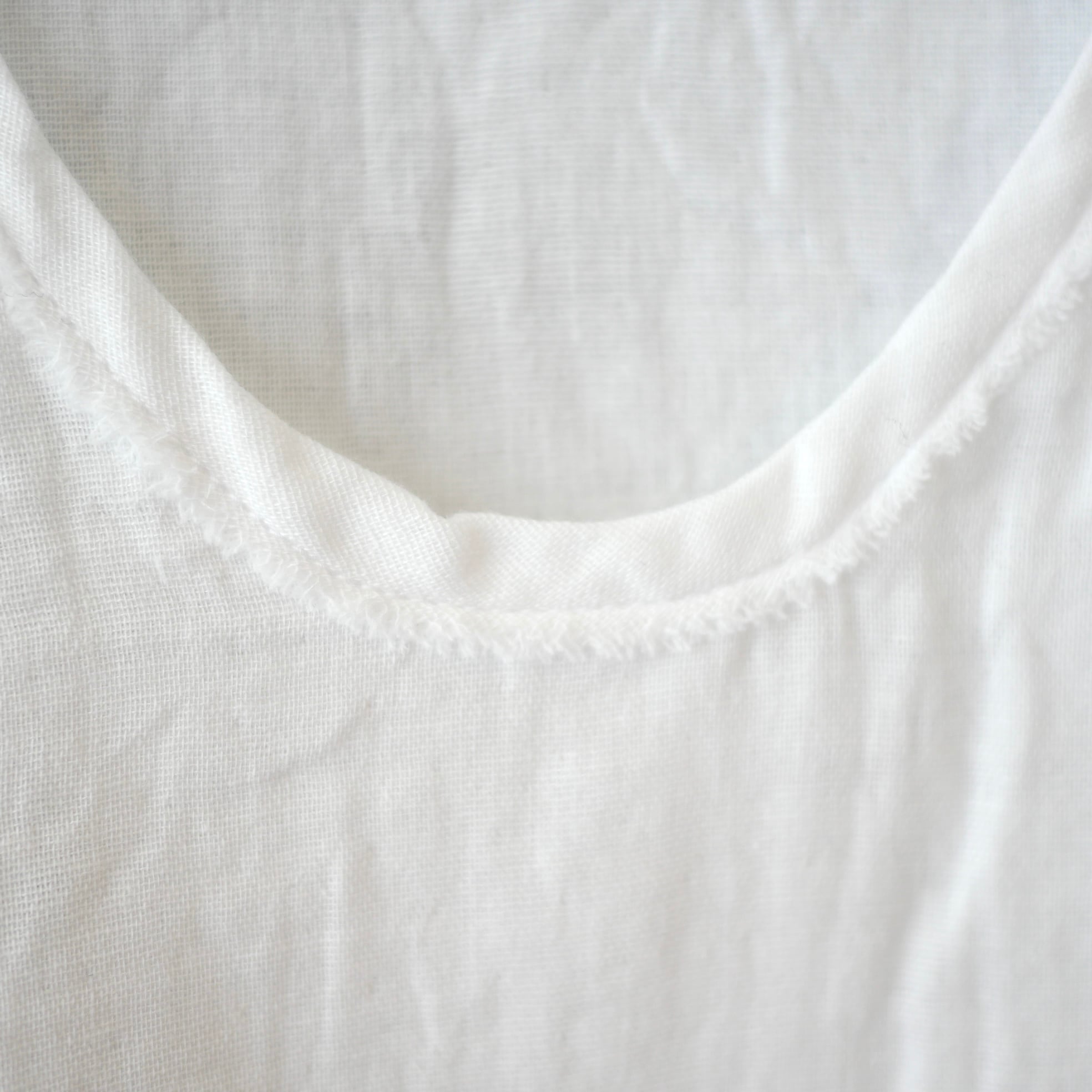 コットンガーゼの優しい素材を使った布帛タンクトップ。程よい隙間があって真夏の暑い日のインナーとして涼しく最適なタンクトップです。見えてもいい素材感ですのでレイヤードアイテムとして便利にお使い頂けます。爽やかな自然素材の着心地をどうぞ。
