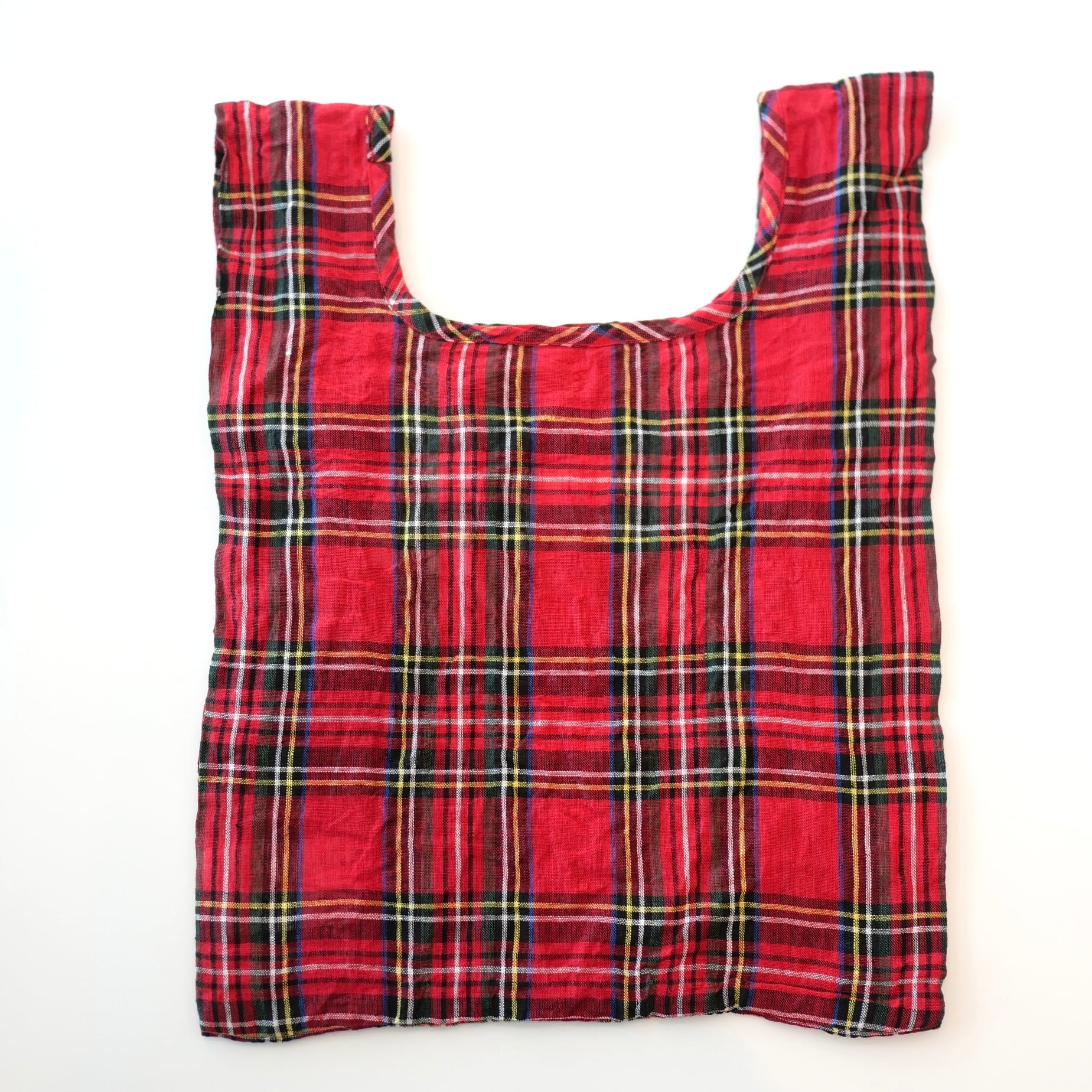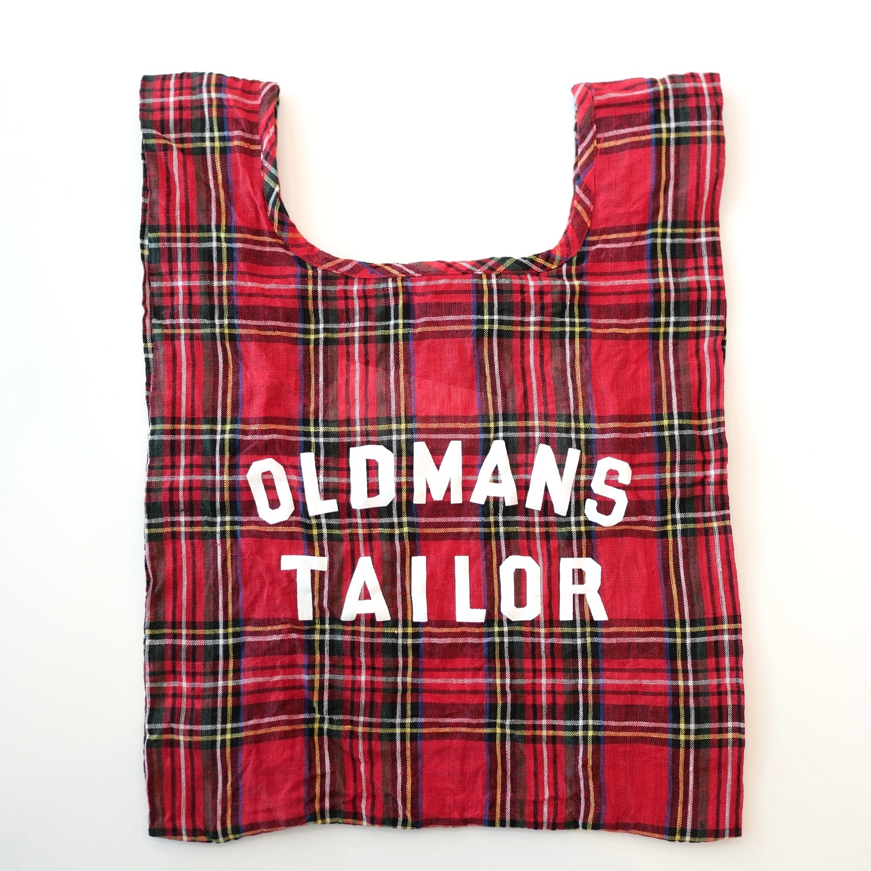 タータンチェック柄リネンのスーパーマーケット型バック。メインバックにも畳んでエコバックにも、とにかく便利な形です。可愛いミニサイズはお弁当バックに丁度いいくらいのサイズ感。OLDMAN’S TAILORのプリントもかっこいい。