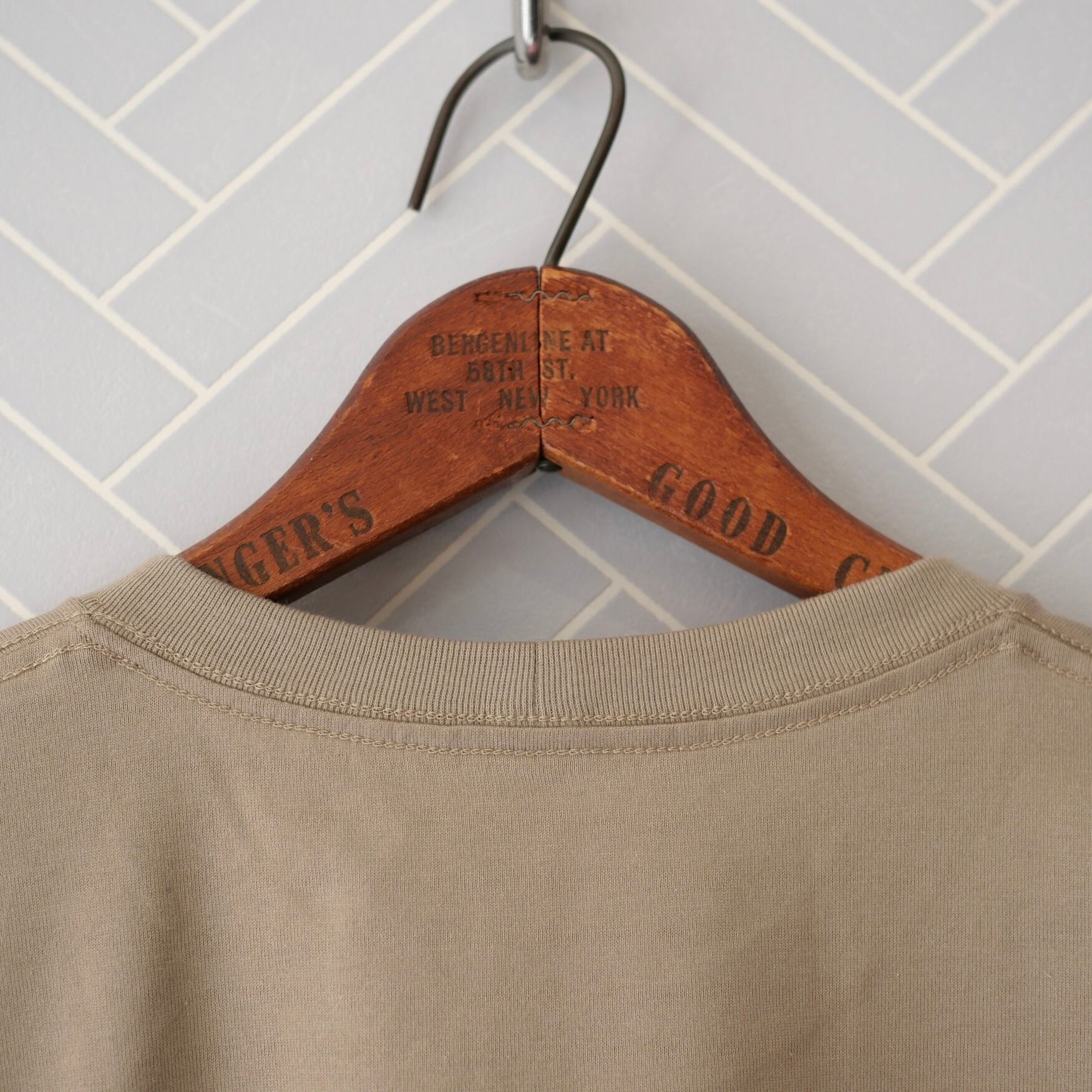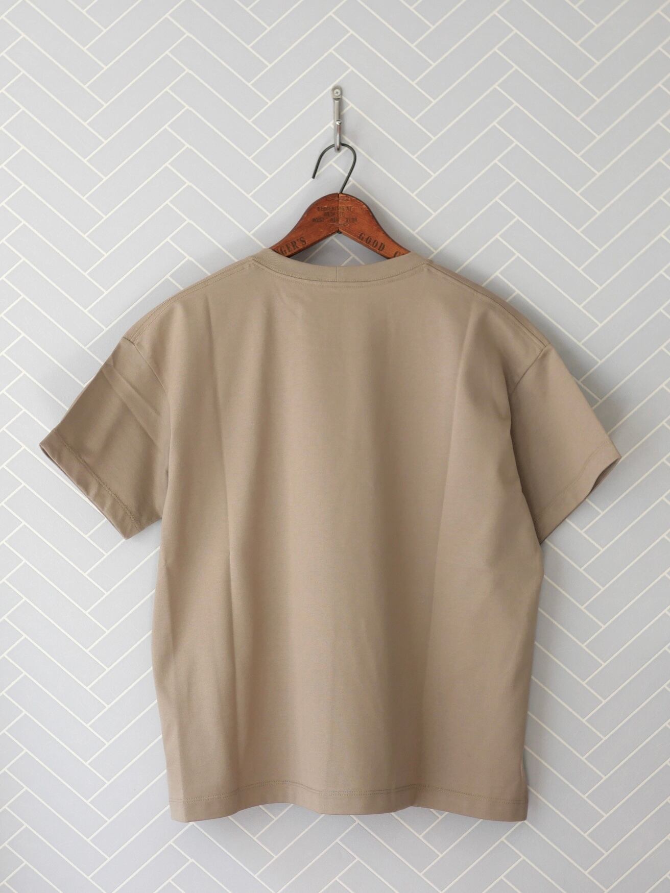 滑らかでしっかりとした生地のBOOKSHELFシリーズ。洗濯にも強く、夏のハードな使用にも強い素材です。身幅が広くボディラインを拾わない半袖Tシャツですが、長すぎない丈感ですっきりとしたプルオーバーの様な着やすさです。