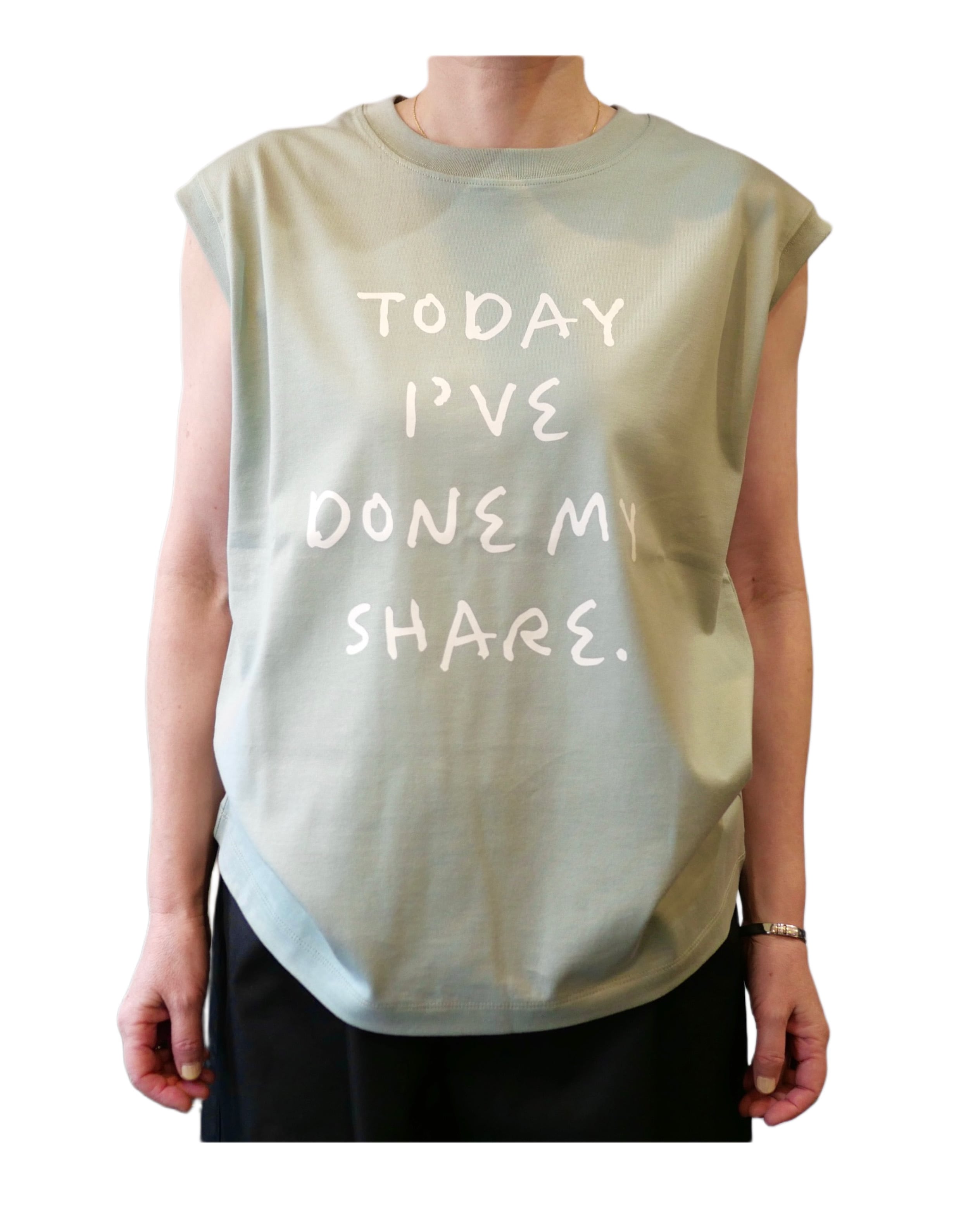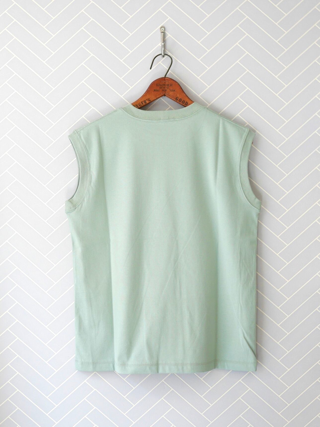 滑らかでしっかりとした生地のBOOKSHELFシリーズ。洗濯にも強く、夏のハードな使用にも強い素材です。肩まで隠れる安心感のあるノースリーブTシャツ。首周りが小さめで上品さを残しながら、暑い夏を涼しく快適に過ごせる一枚です。