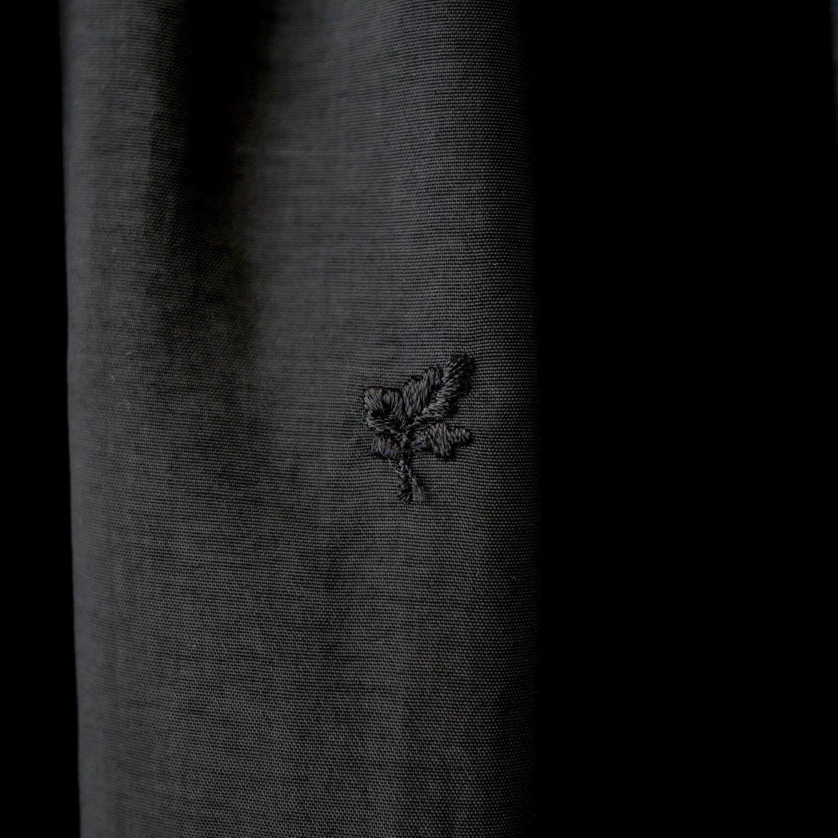 モチーフ刺繍を施した特別感ある生地をヒップ下から使用しています。ウエストはゴム仕様で楽な着心地のロングギャザースカート。ほどよいフレア感で上品な印象です。トップスを選ばず着回しの効くボトムアイテムです。