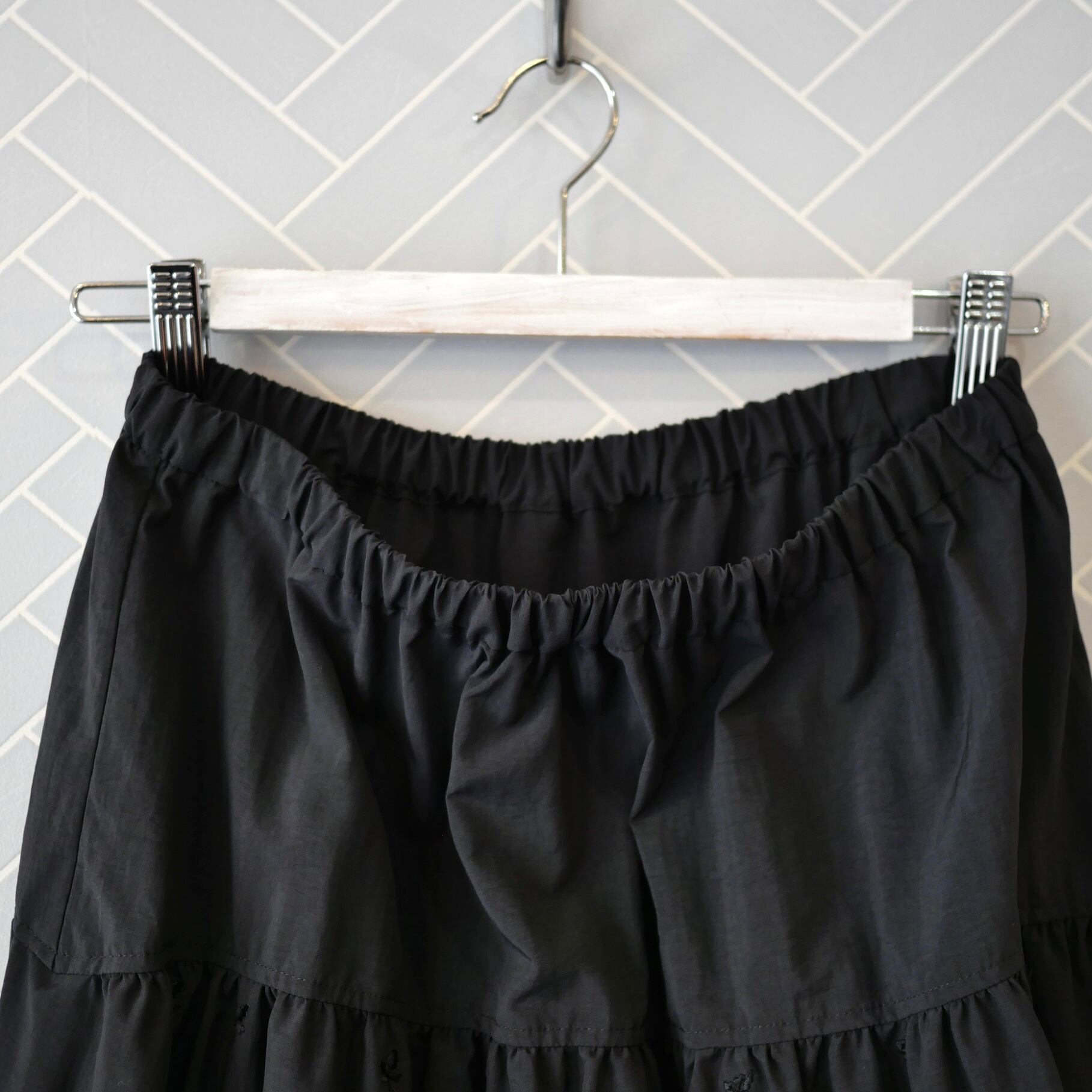 U PHORICA ナイロン刺繍ロングギャザースカート Black