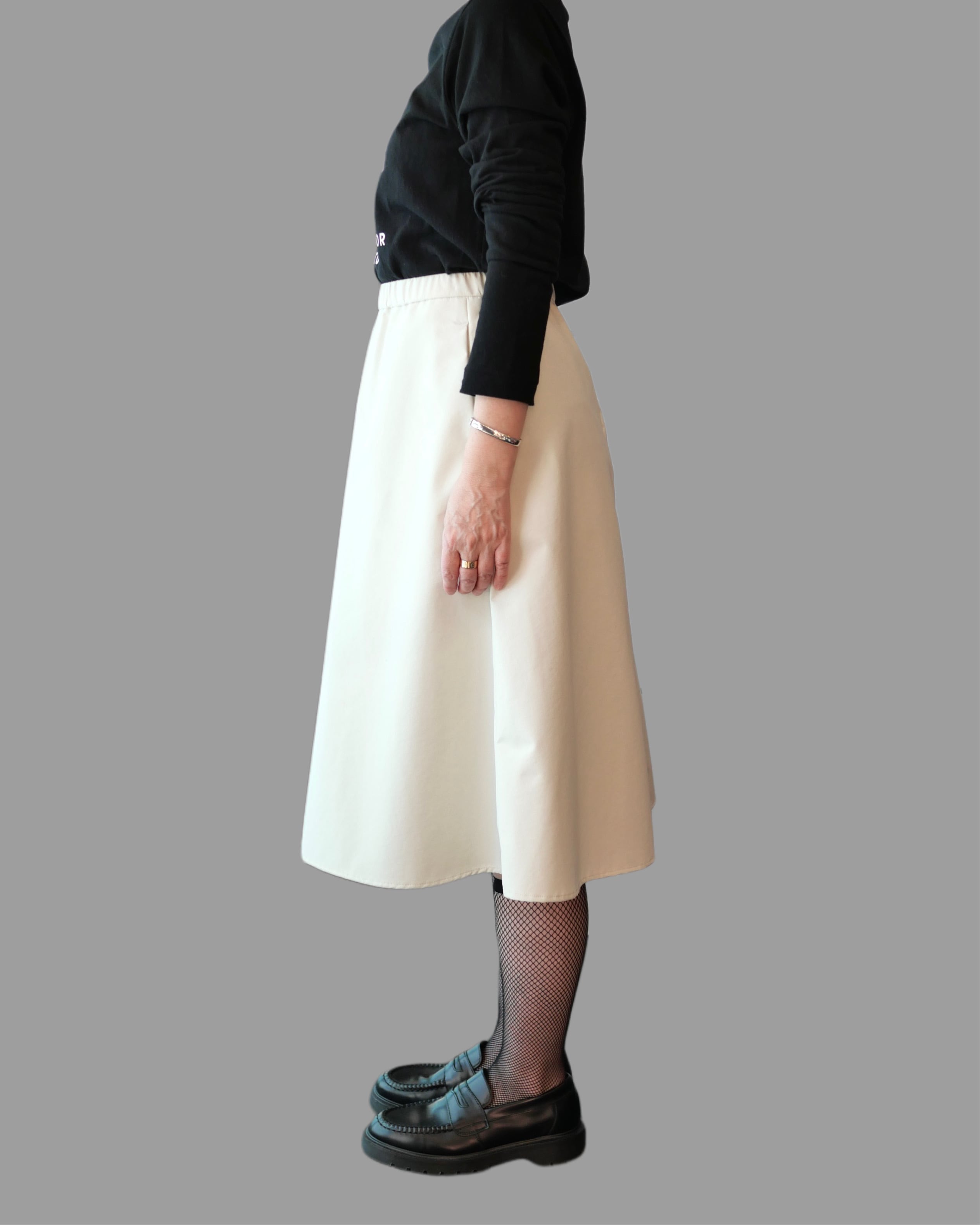 フィッシュネットソックスは、生地の伸縮性がありますので、クルー丈で履いたり、グンと伸ばせばハイソックスの長さで履いていただけます。コーディネートに合わせて長さが変化できる万能ソックスです。