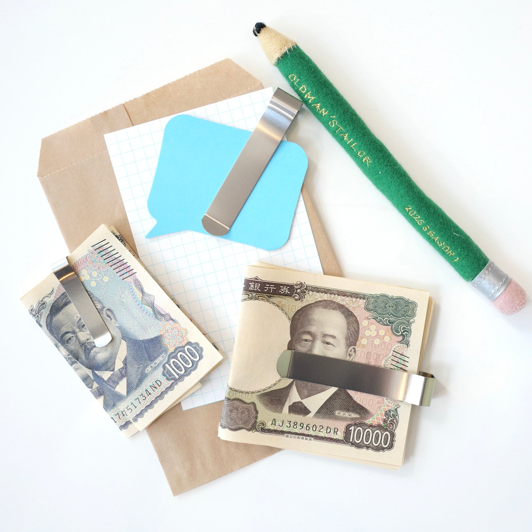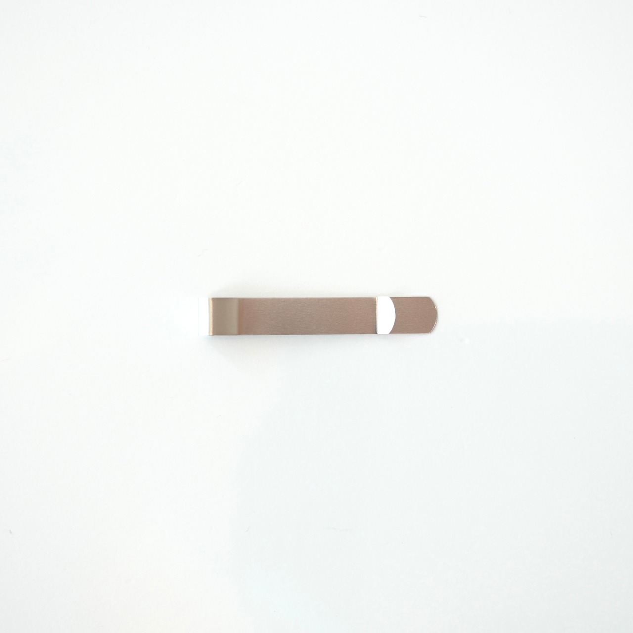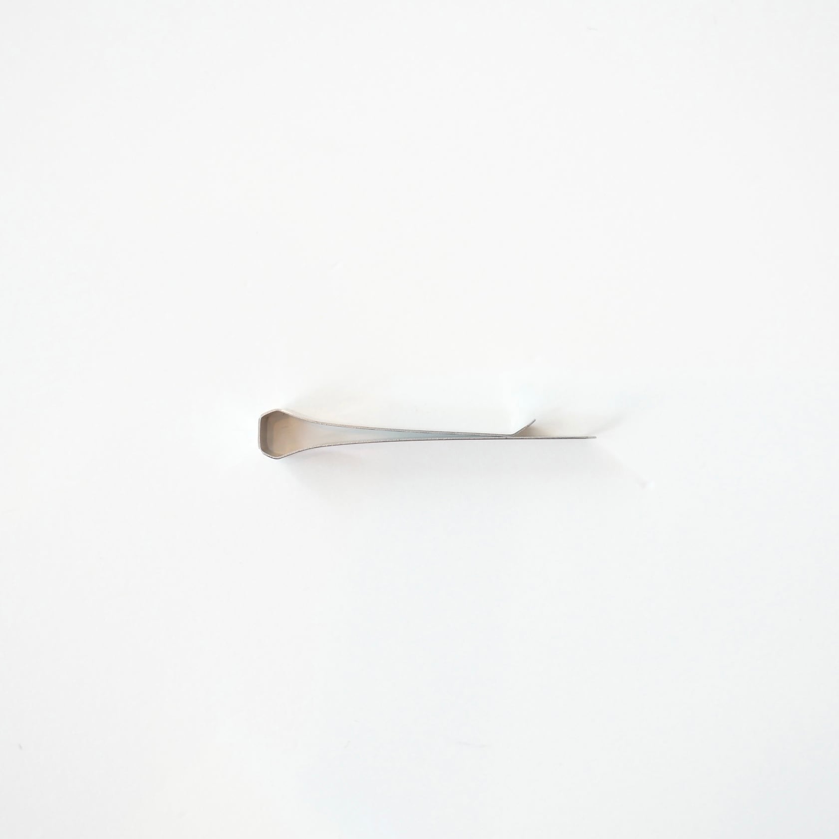 シンプルなステンレスのクリップ。開く手間がなく、挟みジワがつかない形。書類を挟んだり、マネークリップとしてもお使いいただけます。