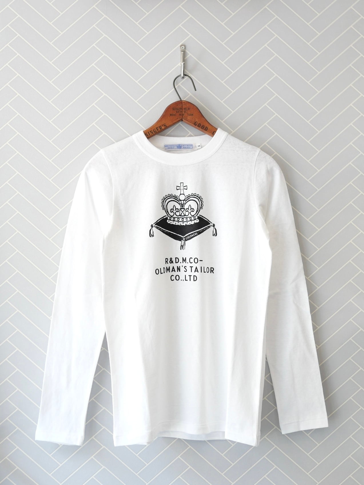 R&D.M.Co-×CIELOAZUL別注CROWN L/S T-SHIRT WHITE×BK S,M