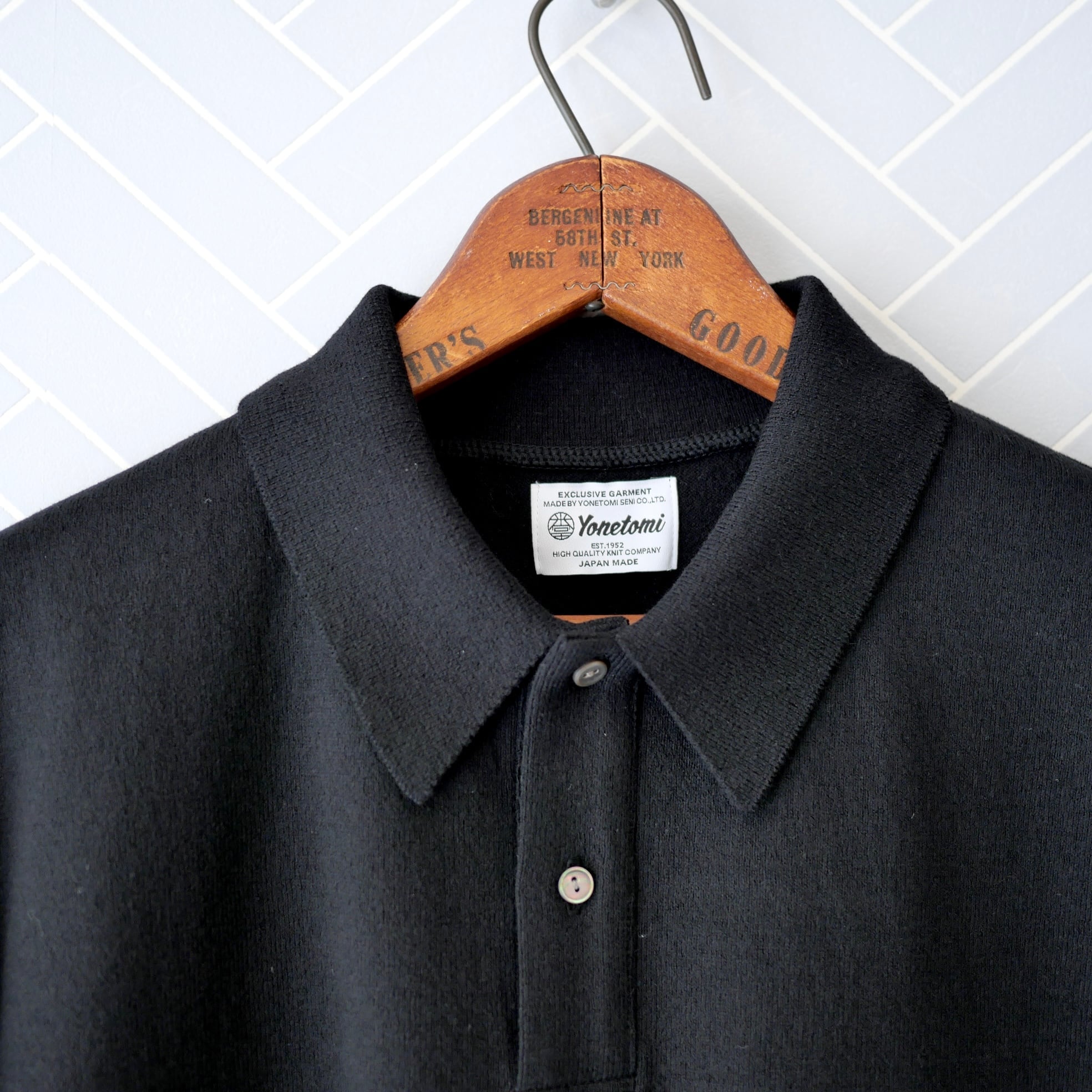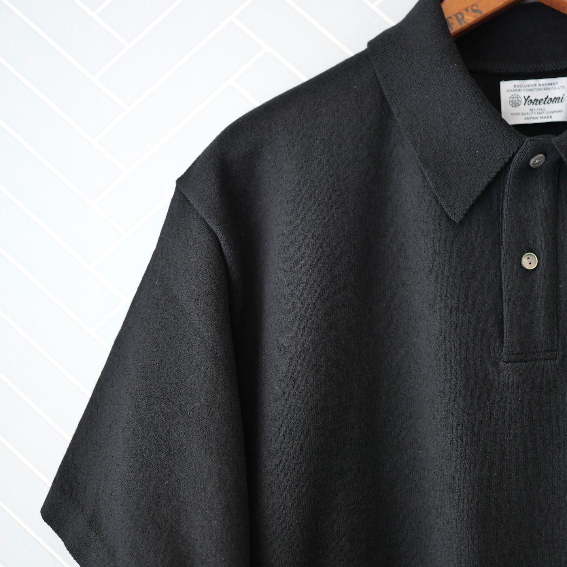 Yonetomi LIGHT WAVE COTTON KNIT POLO BLACK ③