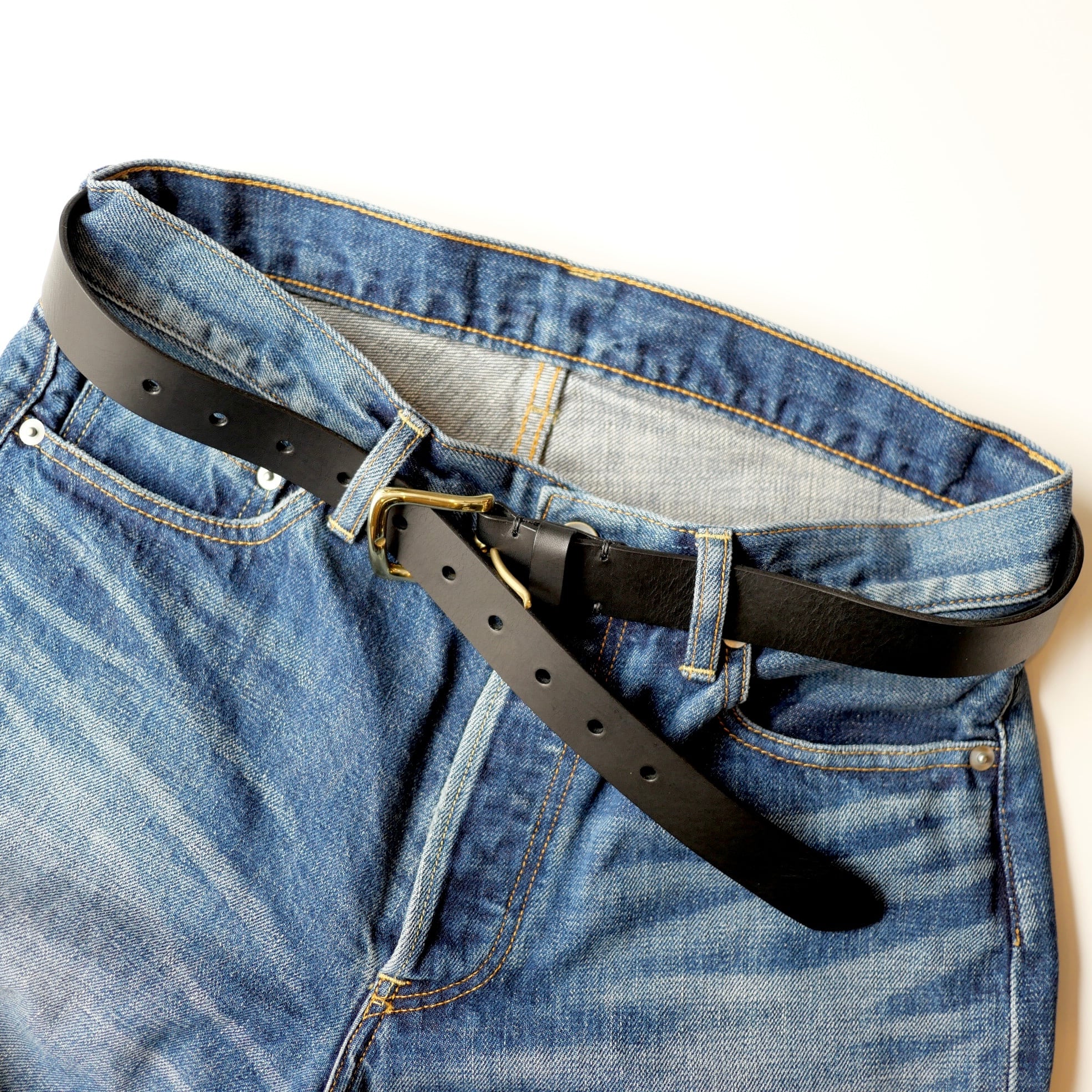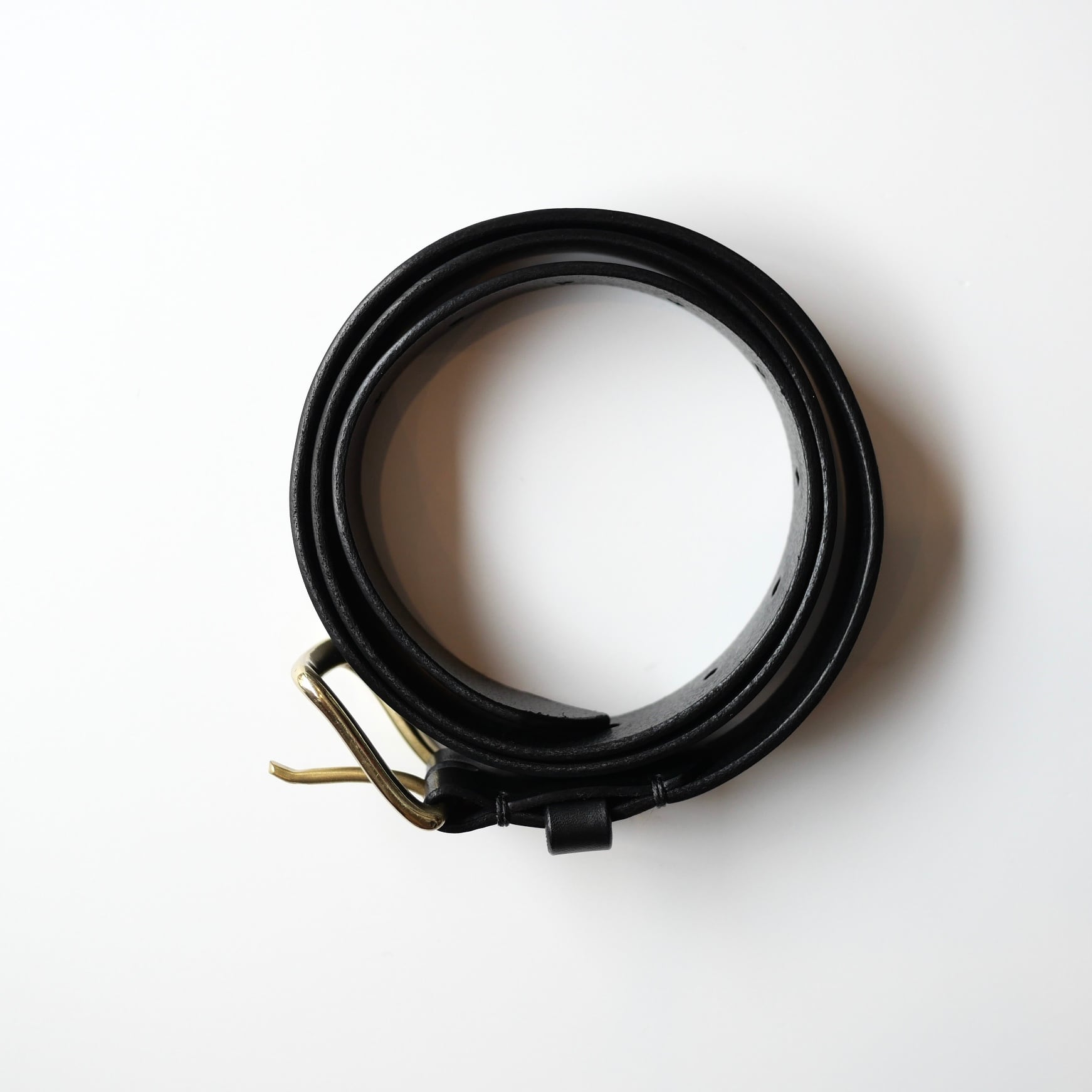 縫い目の無いプレーンなベルトです。頑丈なバックルがクールな印象です。デニムとの相性も抜群です!