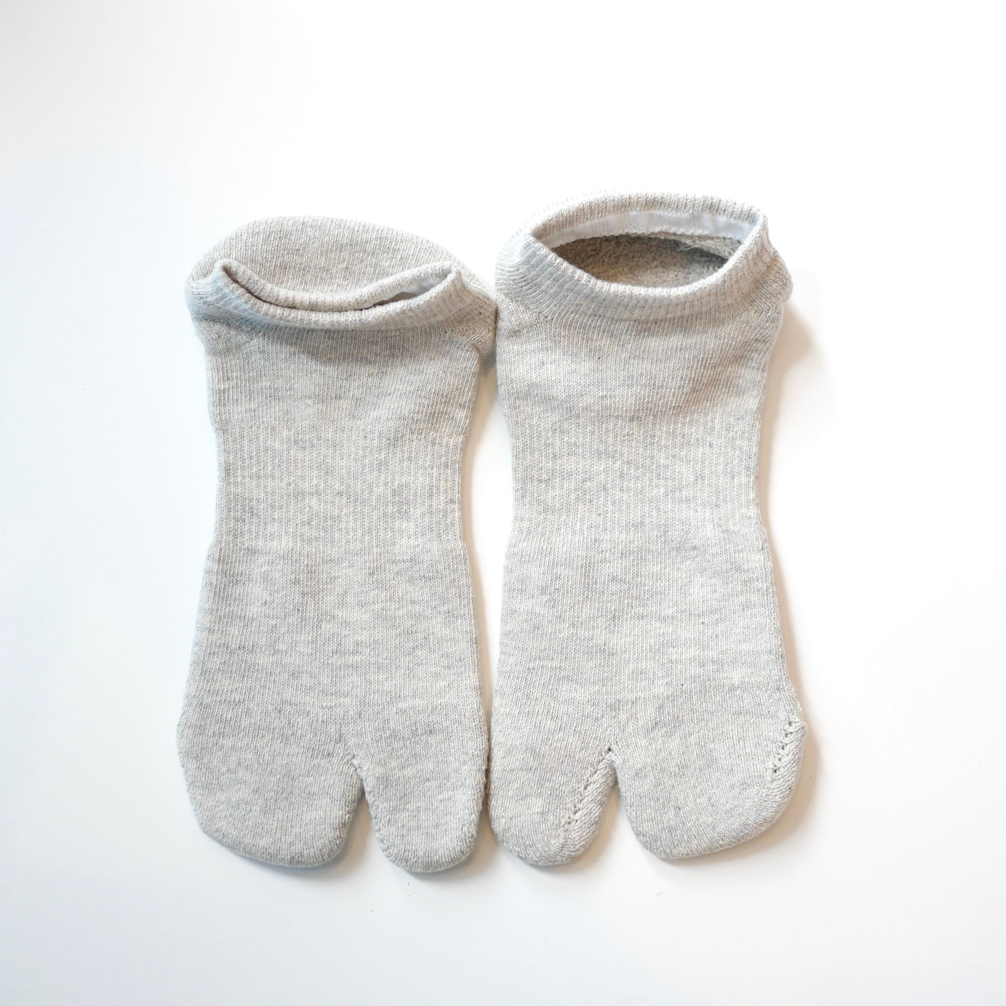 ラフィ杢コットンを使用したアンクルソックス3Pパック。カラーはオートミール、ライトヘザーグレー、ヘザーグレーの3足組。