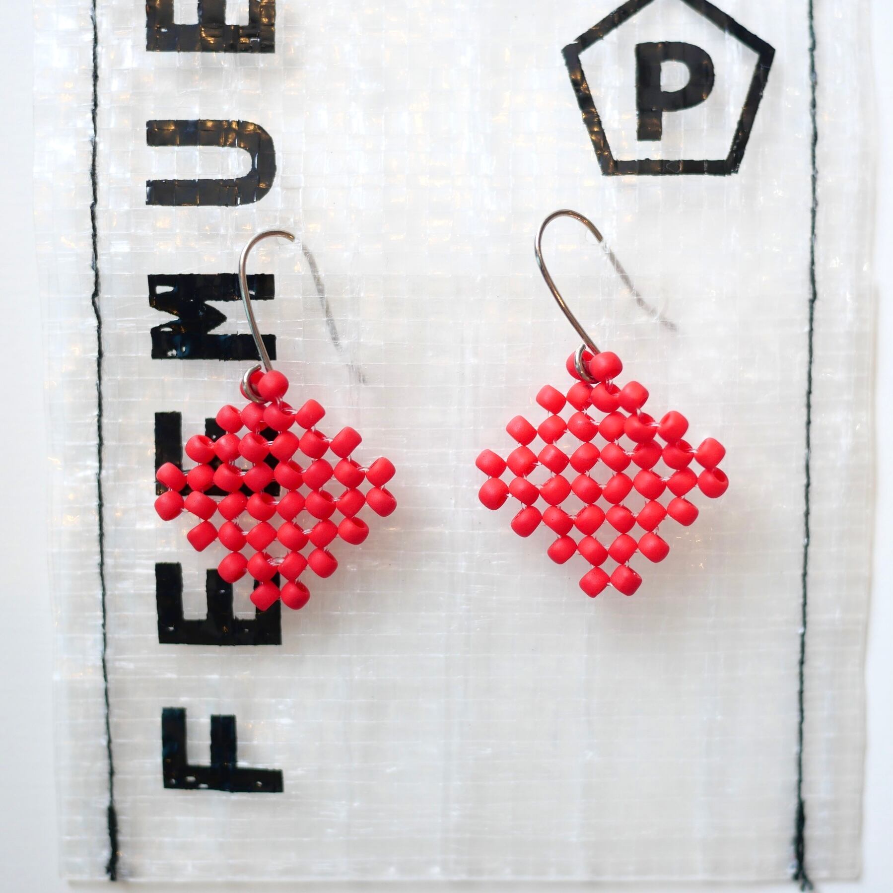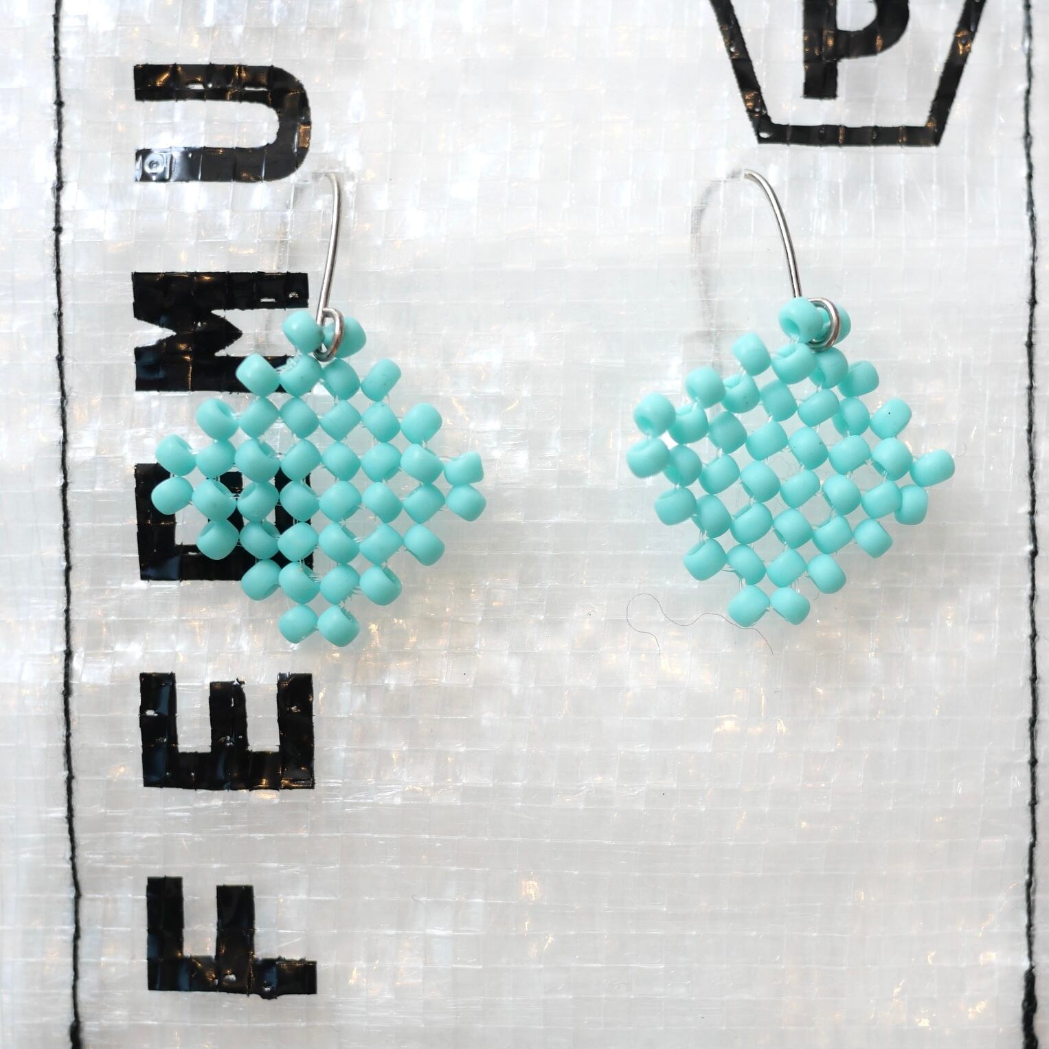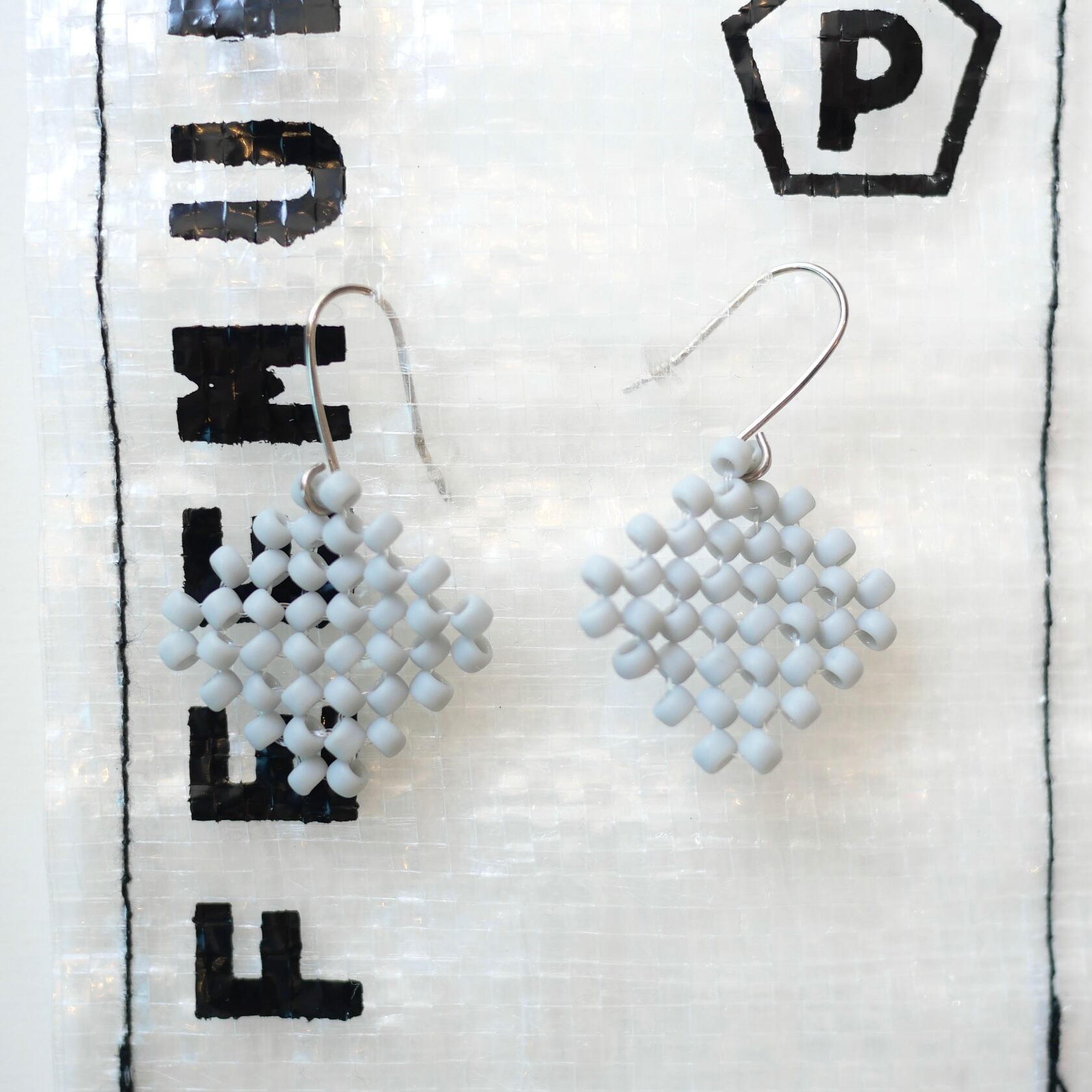 シンプルなひし形のピアス。マットな色と質感が魅力的です。