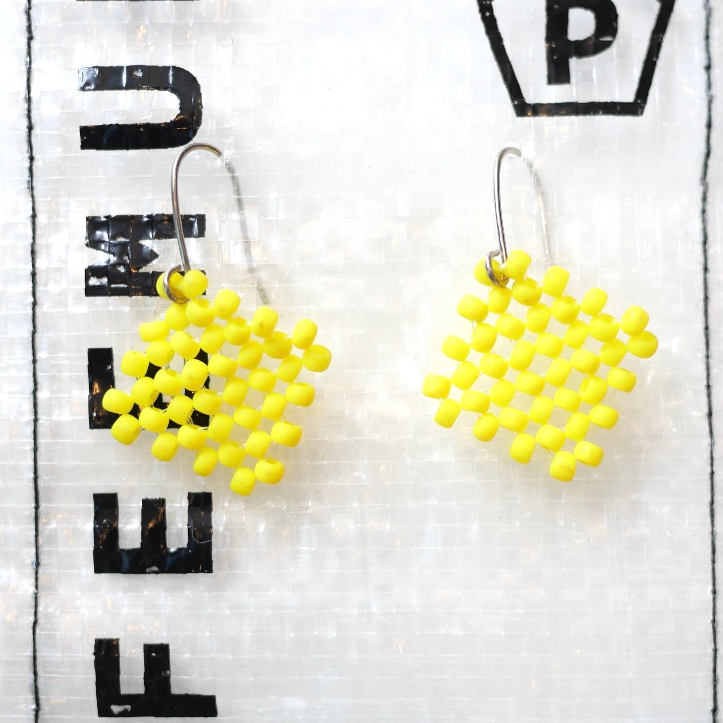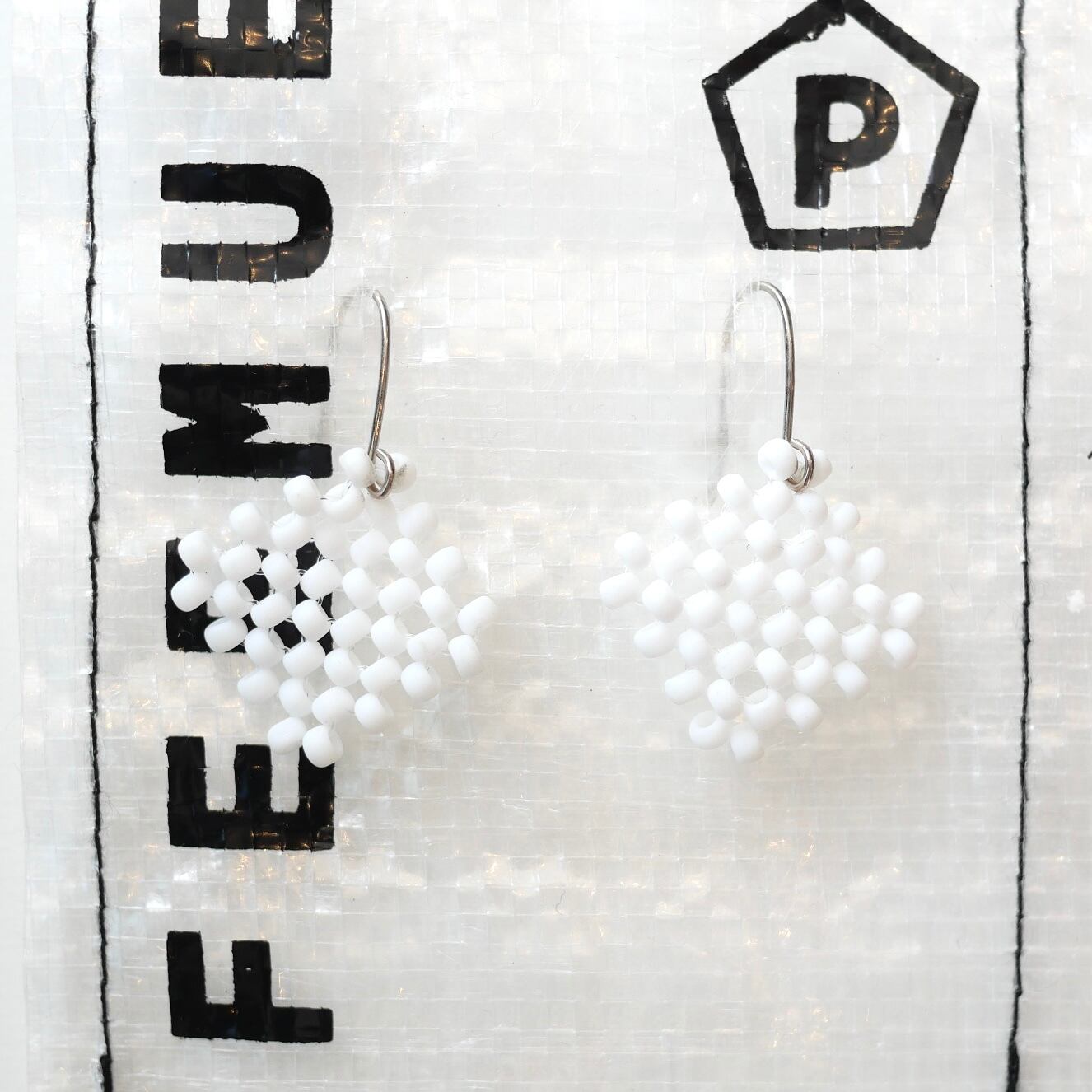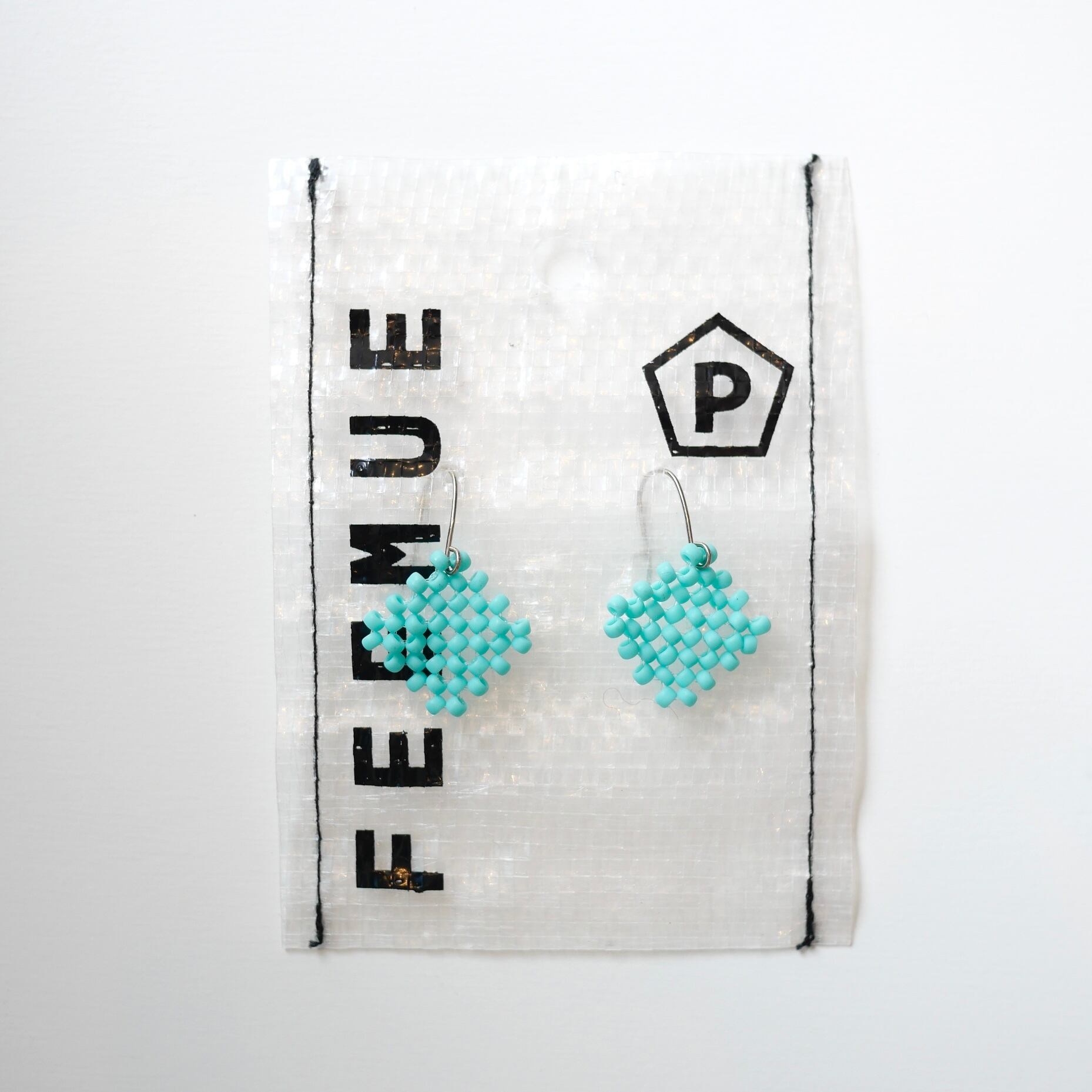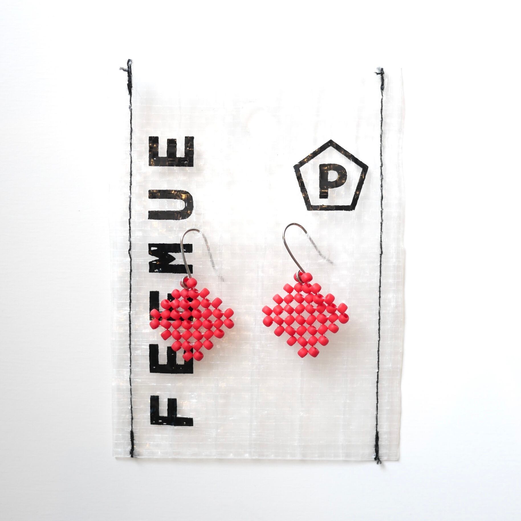 シンプルなひし形のピアス。マットな色と質感が魅力的です。