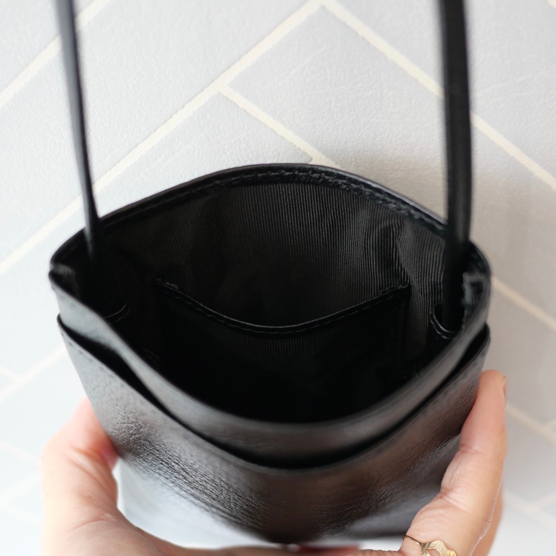 半艶の質感で落ち着いた風合いのソフトレザーを使用したサコッシュ。本革ならではの耐久性と柔軟性が特徴です。
