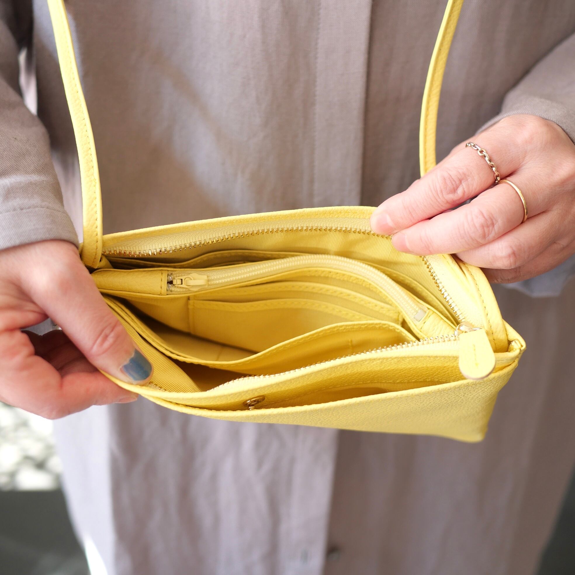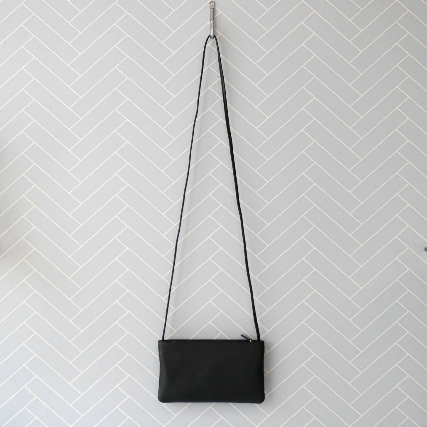 半艶の質感で落ち着いた風合いのソフトレザーを使用したサコッシュ。本革ならではの耐久性と柔軟性が特徴です。