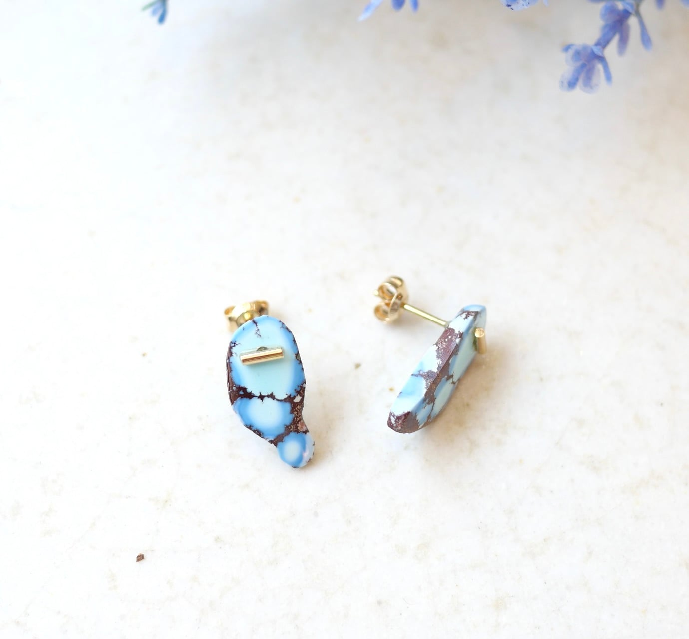 ラベンダーがかったカザフスタンターコイスを限りなく自然なままピアスに仕立てた限定品。