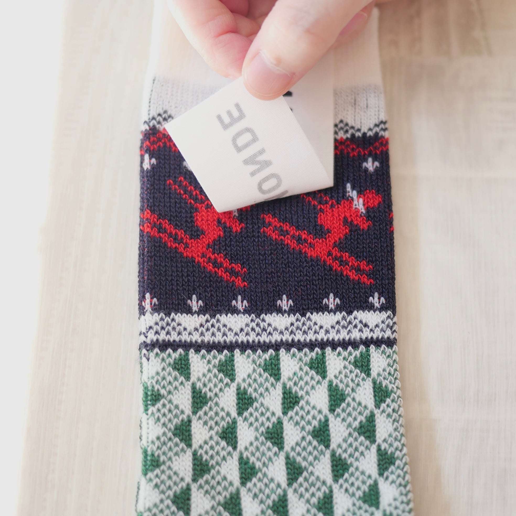 ノルディックセーターをイメージしたスキーヤー柄のソックスです。