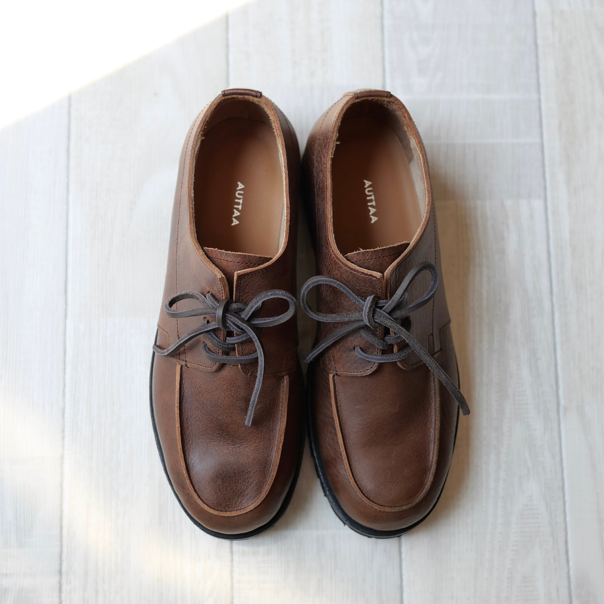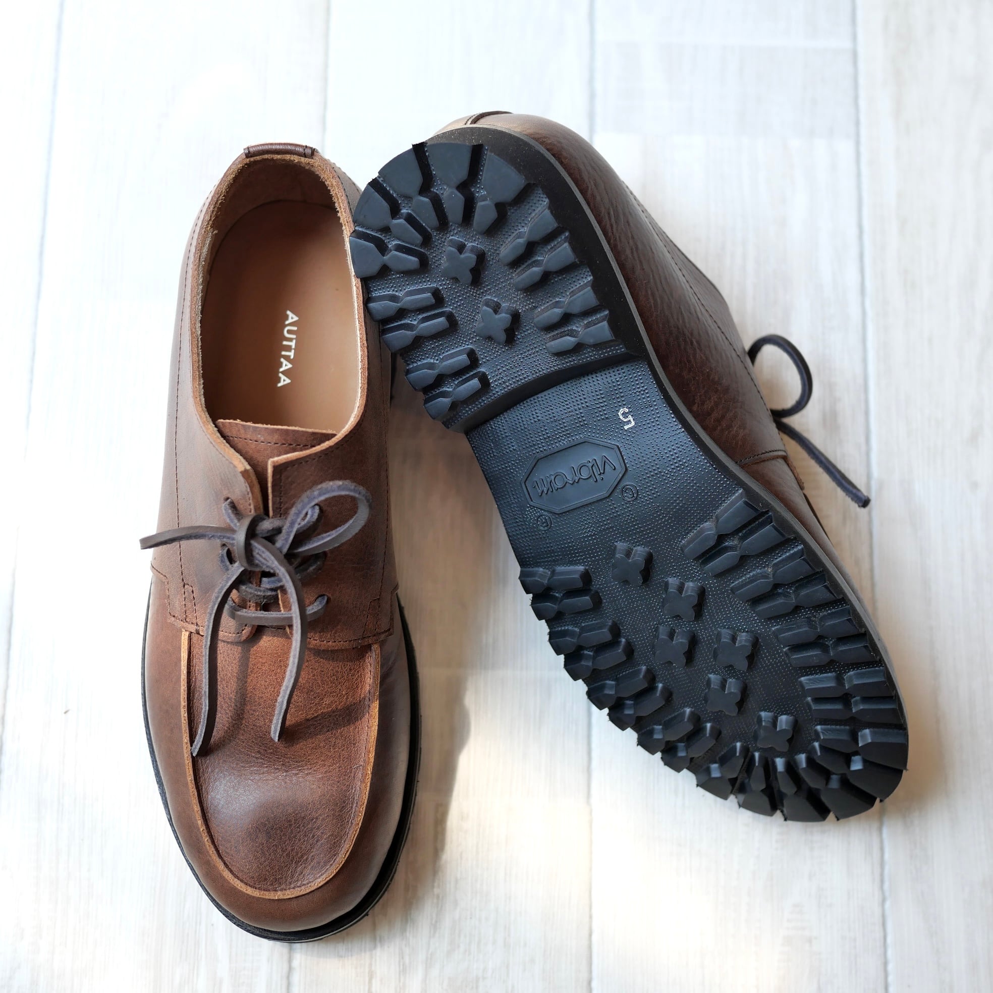 ソールはイタリアvibram社のタンクソールを使用していますが、主張しすぎず、ミニマムなコバ周りに仕上げてあります。”AUTTAA”らしい秋の新作です。やや厚底の履き心地は軽くて、スニーカーを超えた歩きやすさです!