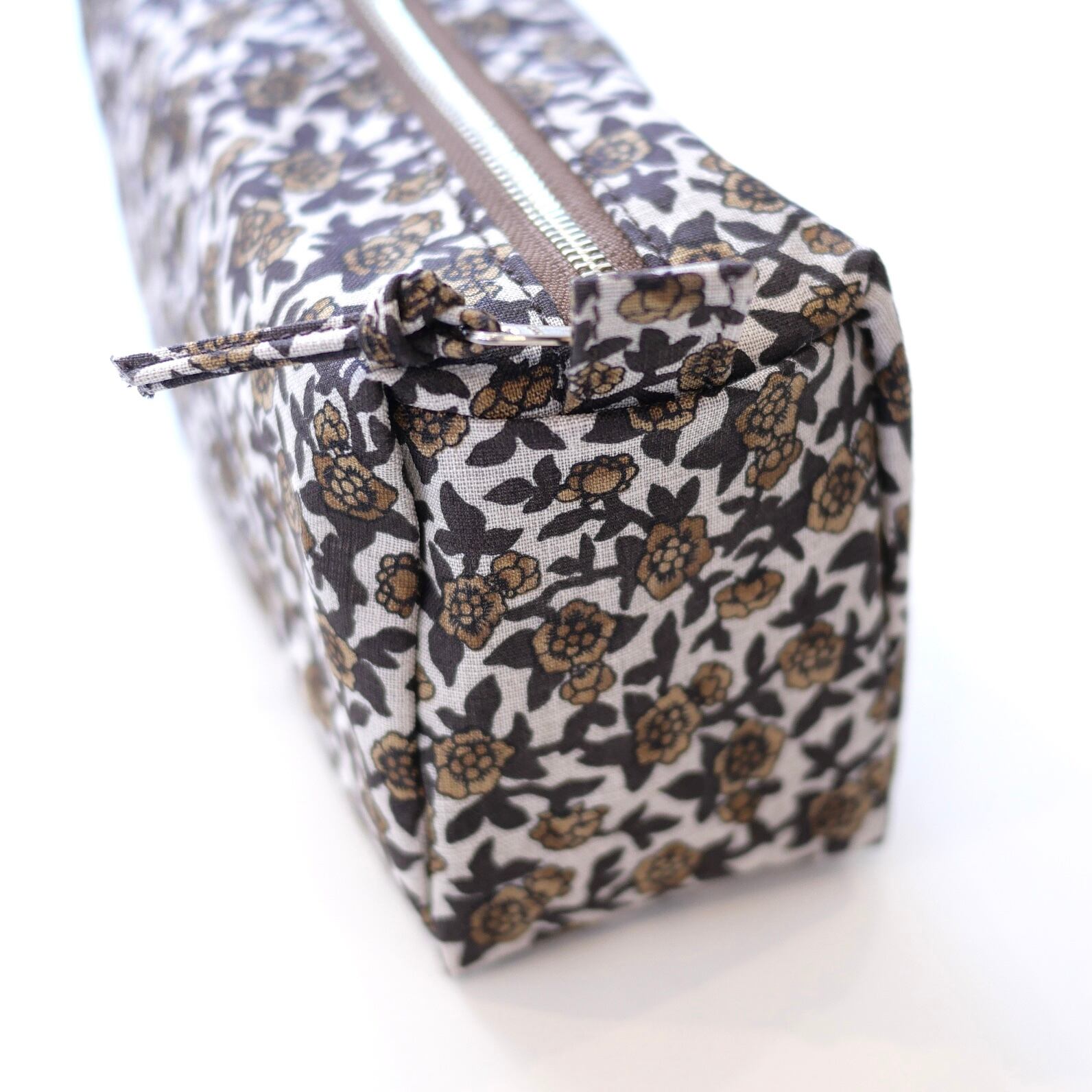 R&D.M.Co-定番の立体型ポーチ。中身がたくさん入りしかも見やすい立体構造で使いやすいです。ころんとしたフォルムで、バックの中に縦にも横にも収まるデザイン。裏地のPVC加工により生地がしっかりして水濡れにも強くなっています。