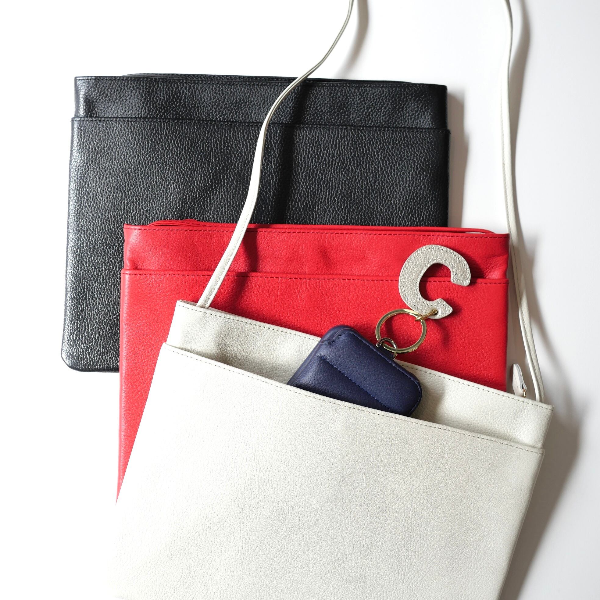 半艶の質感で落ち着いた風合いのソフトレザーを使用したサコッシュ。本革ならではの耐久性と柔軟性が特徴です。