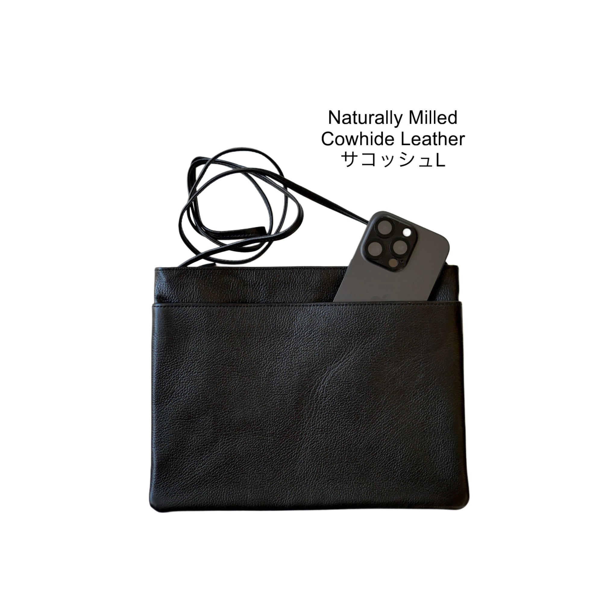 人気のレザーサコッシュ、大きなサイズが新入荷です。