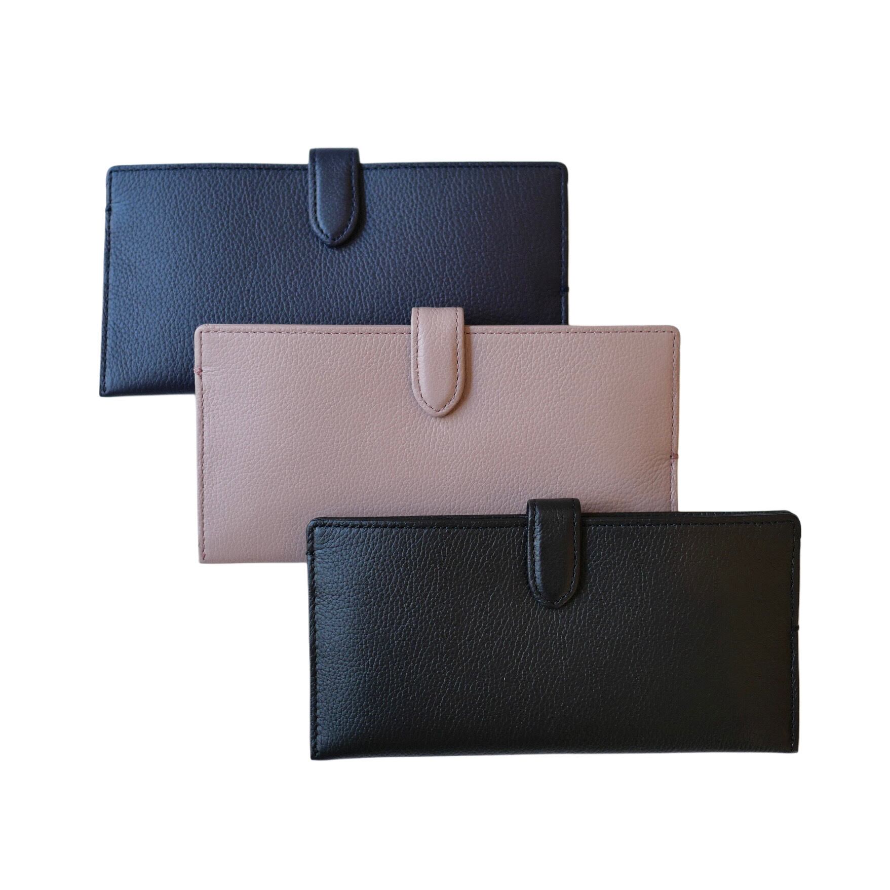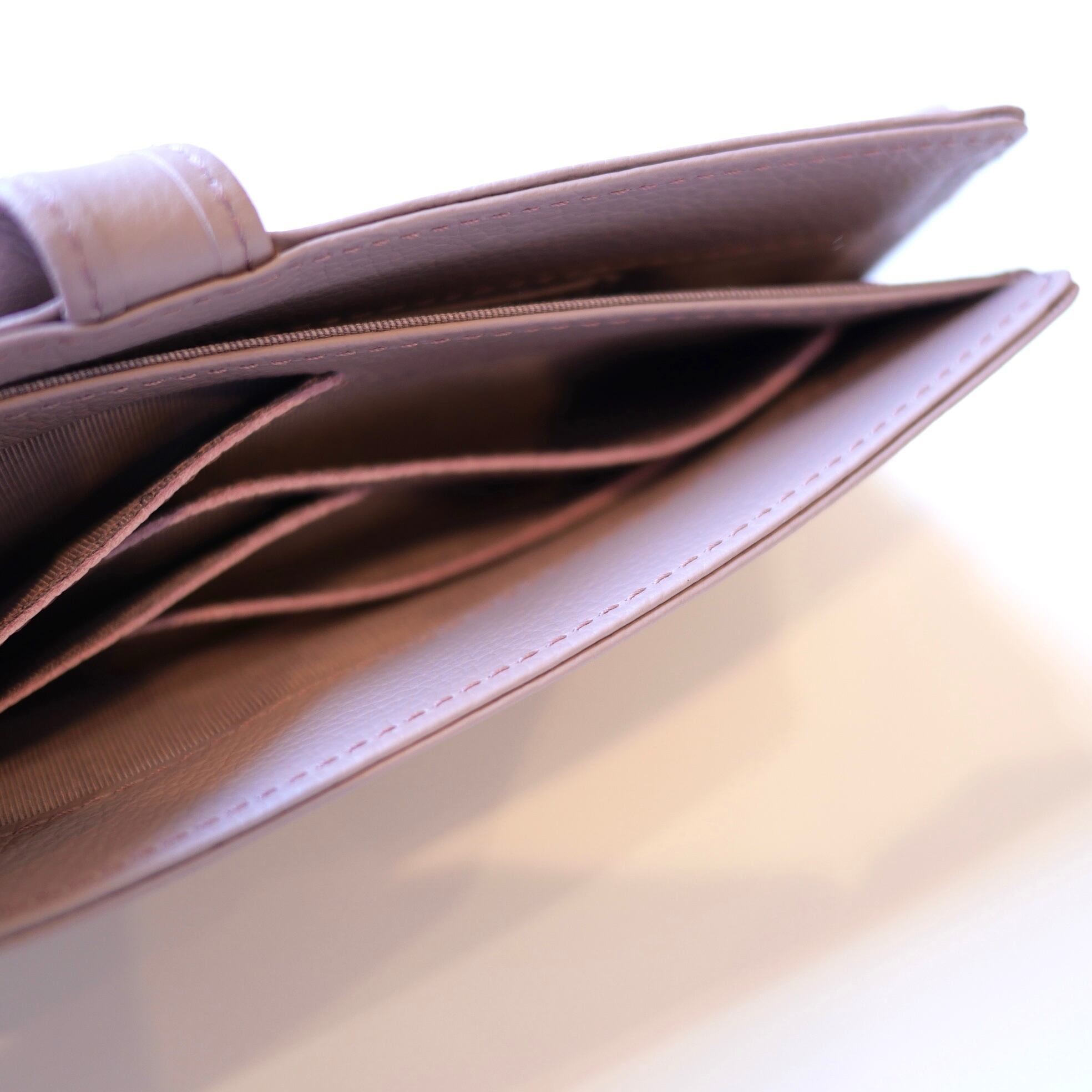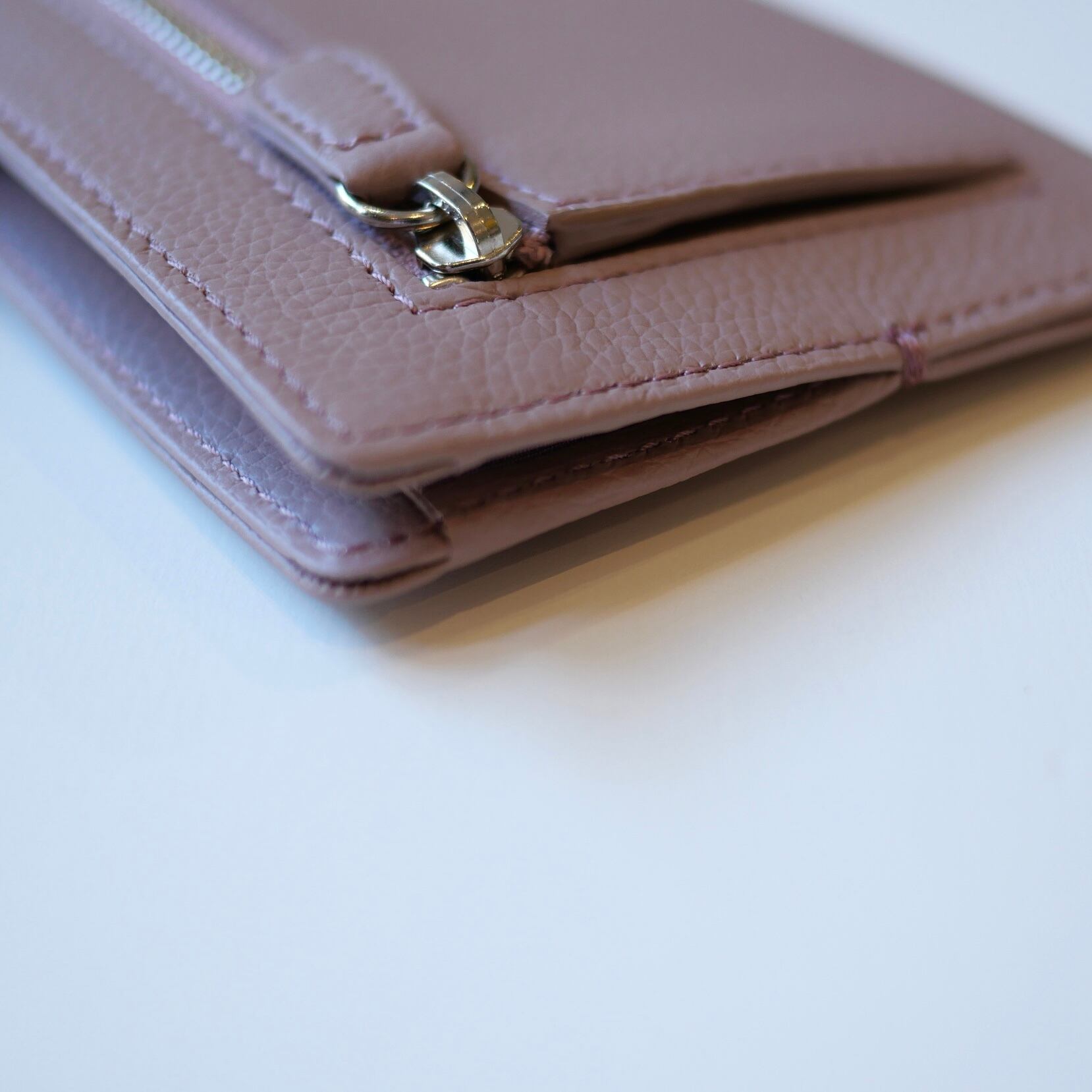 お札はもちろん、カード類が複数入るように工夫された、薄くて収納力のあるウォレットです。ファスナー付きポケットには小銭が収納できます。左右で切り込みの深さが異なっていて、お札が取り出しやすい形です。