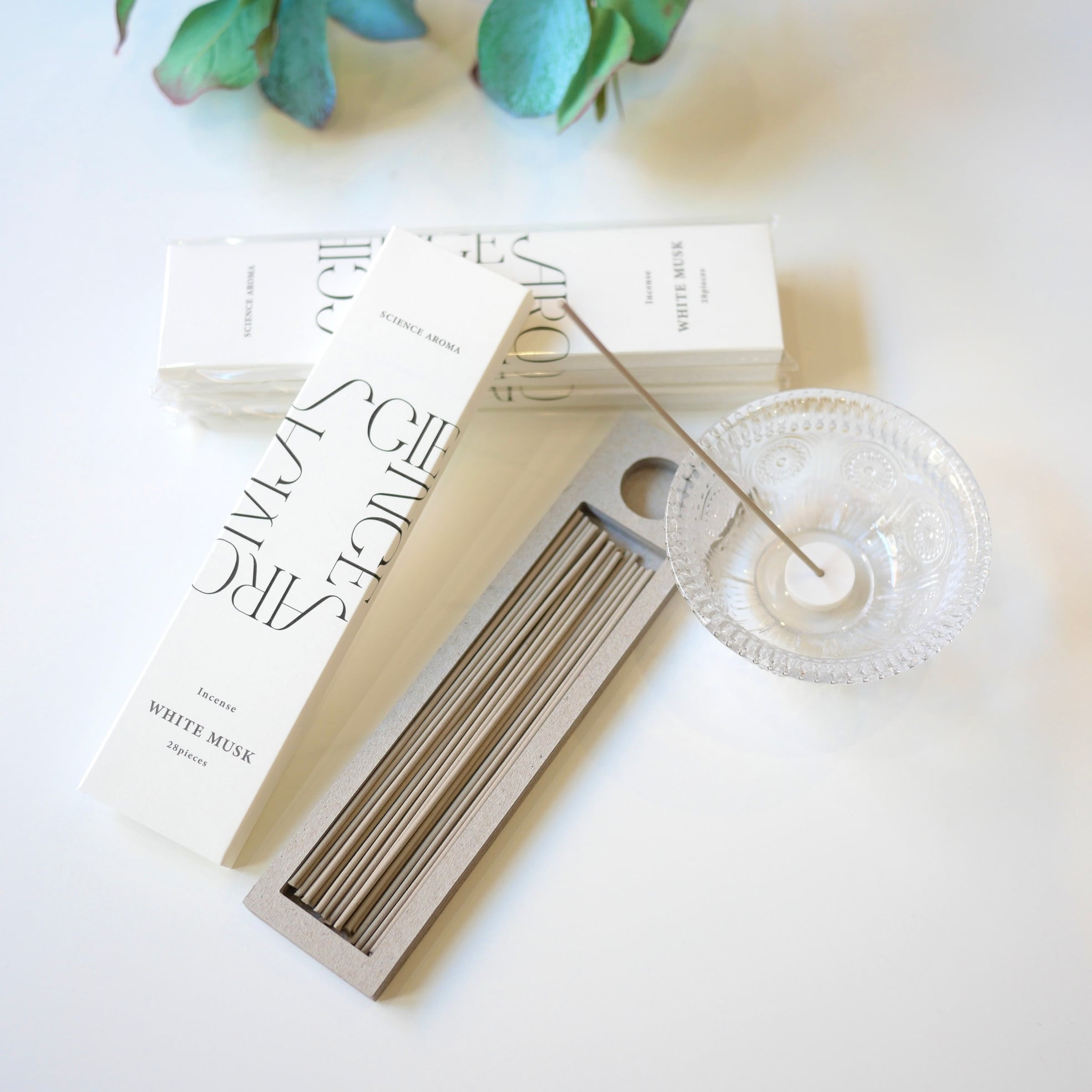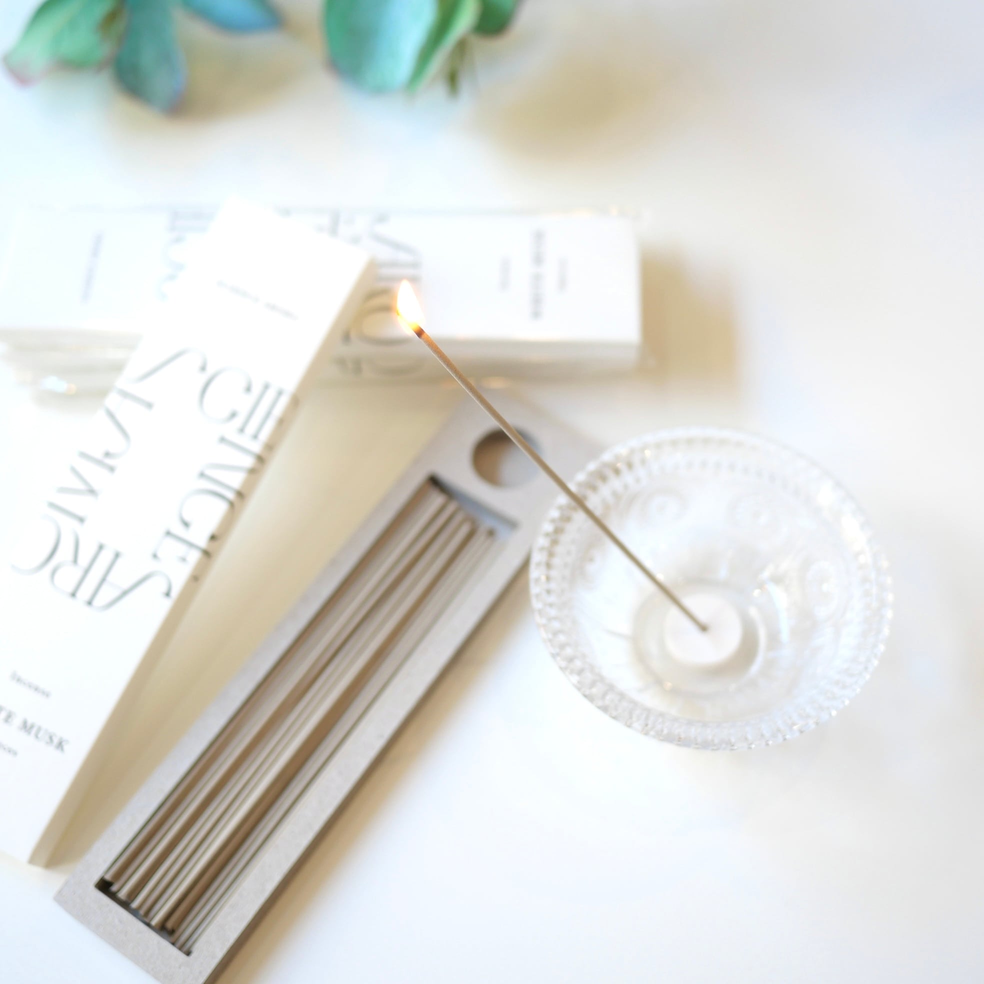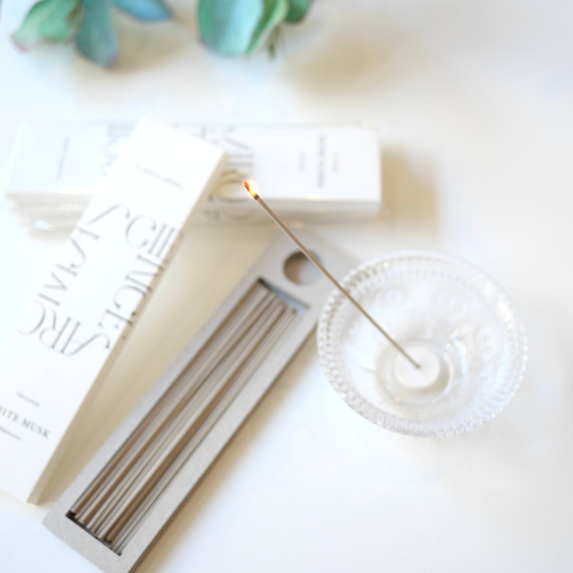 ゆっくりと立ち上がる煙から広がるホワイトムスクの香りが気分の切り替えに最適です。様々なシーンでお楽しみください。