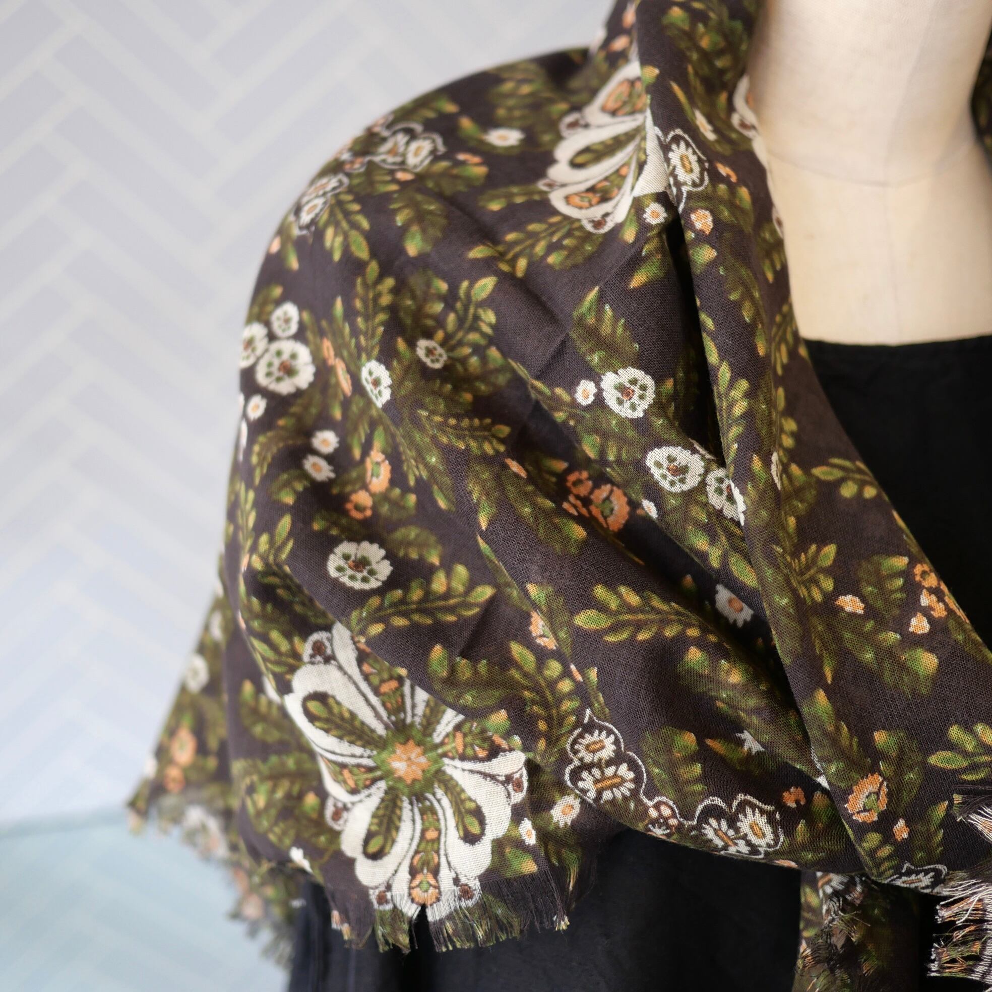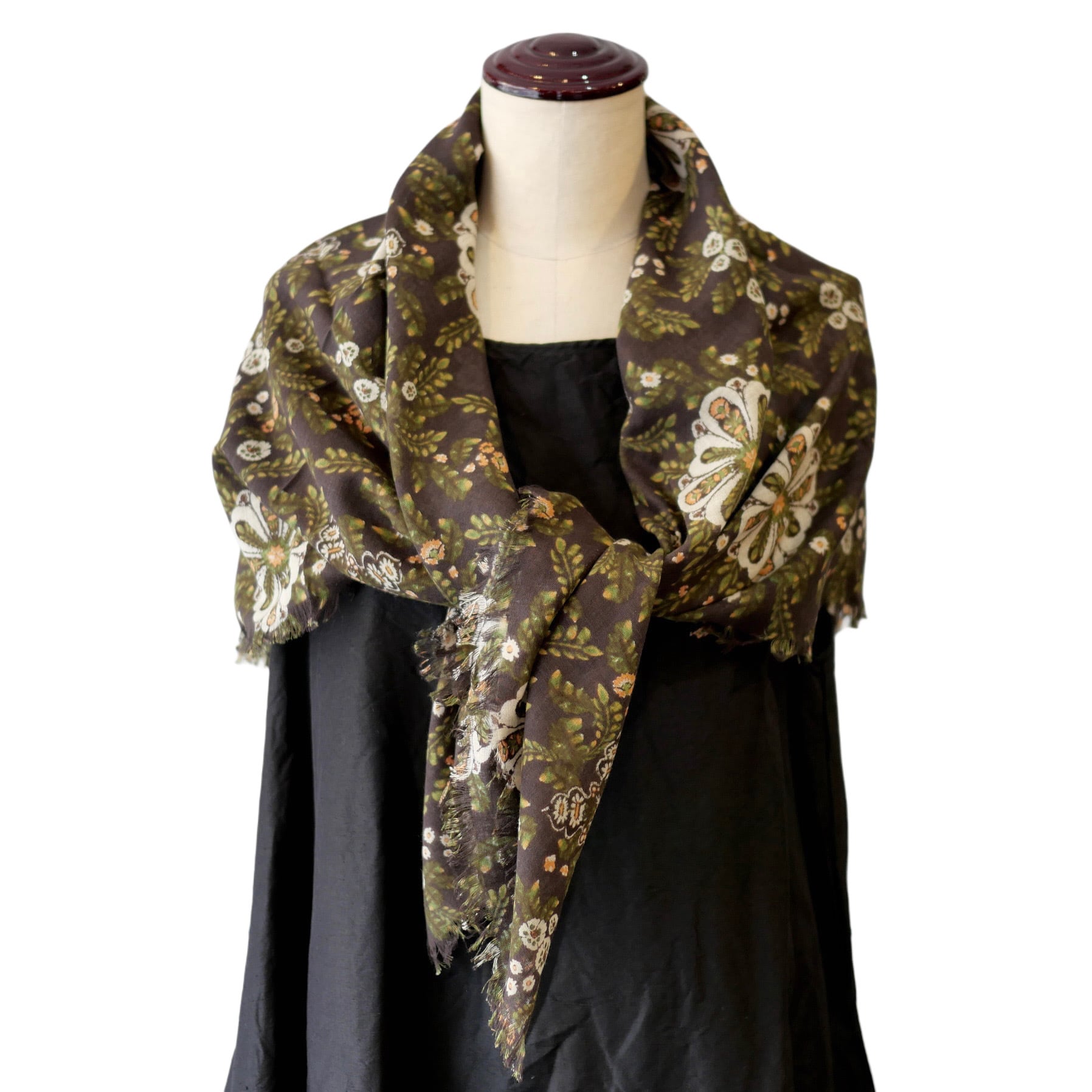 R&D.M.Co- no.6398a KALEIDOSCOPE FLOWER GAUZE SHAWL Dark Brown