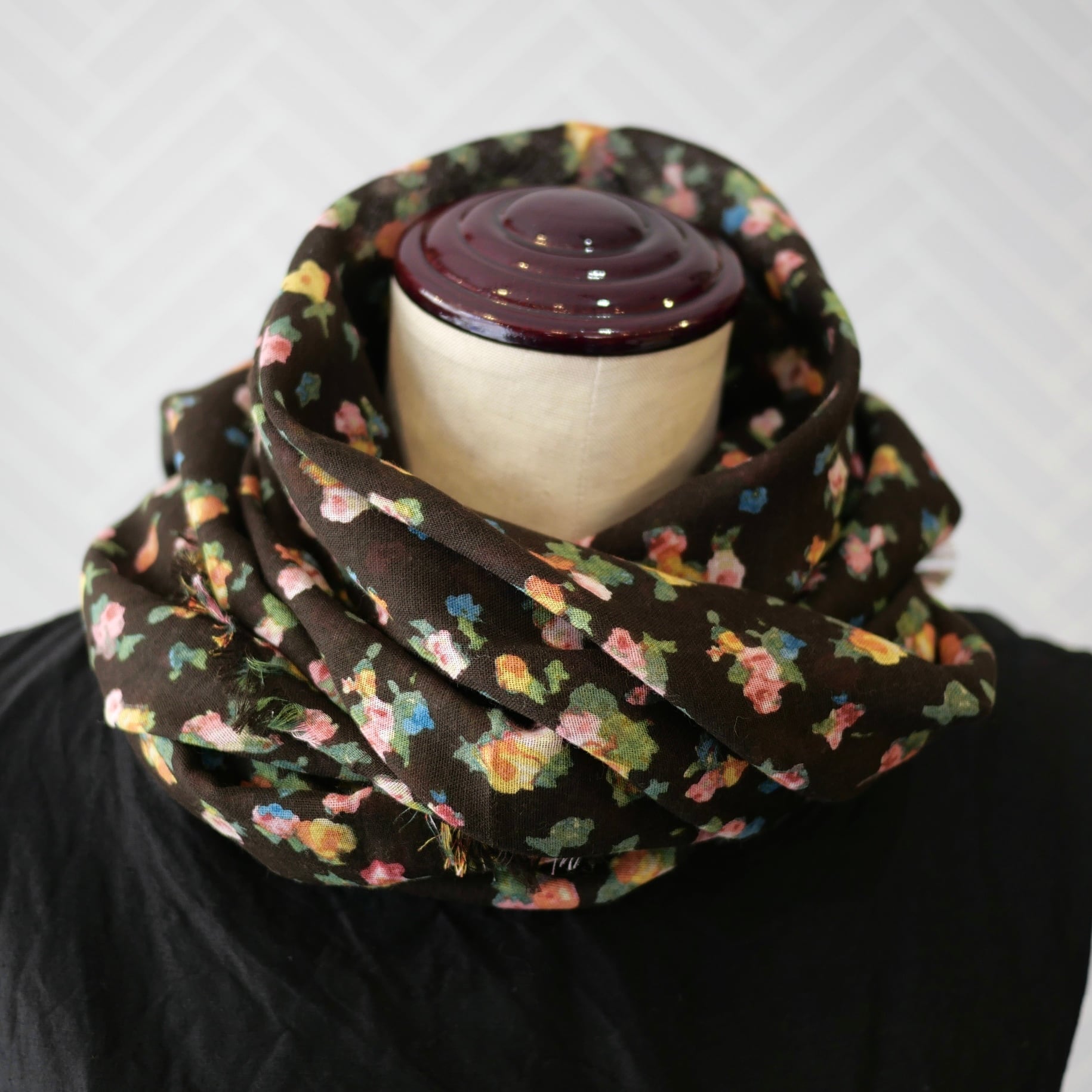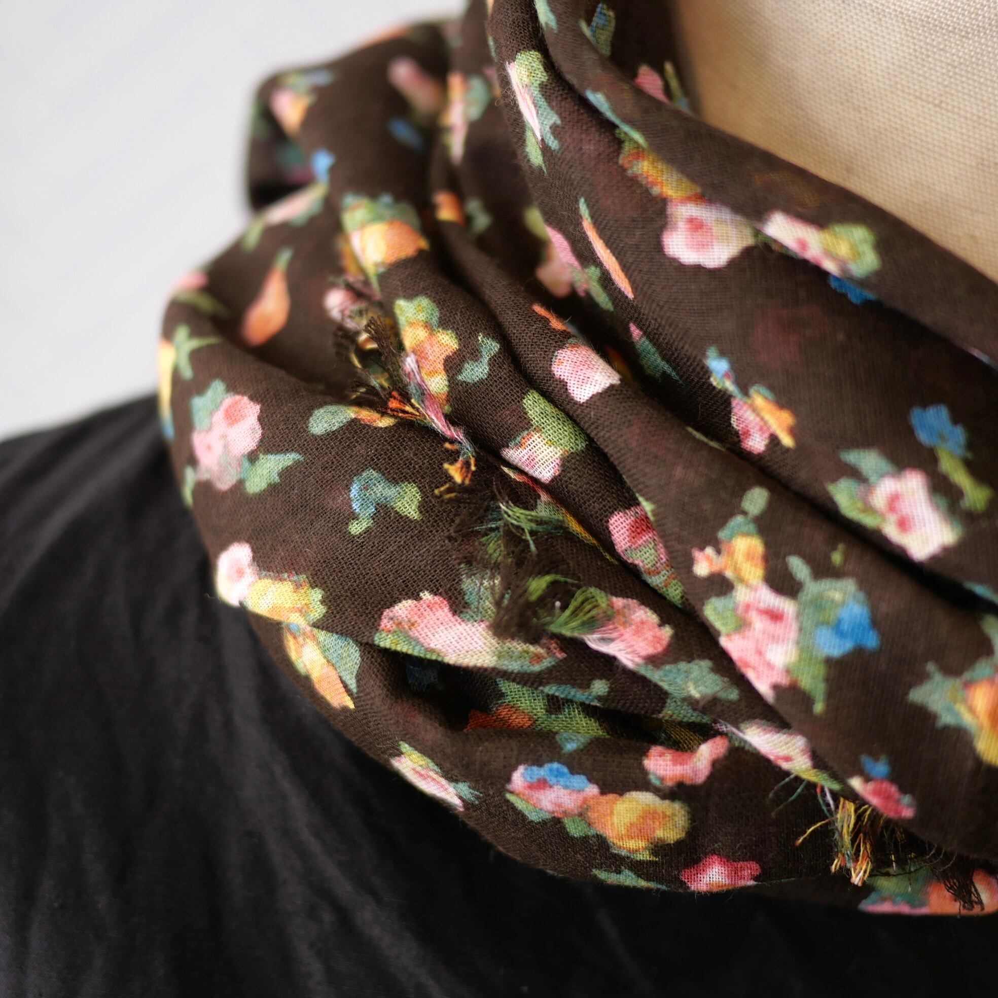 R&D.M.Co- no.2249a VINTAGE FLOWER PRINT GAUZE SHAWL Brown