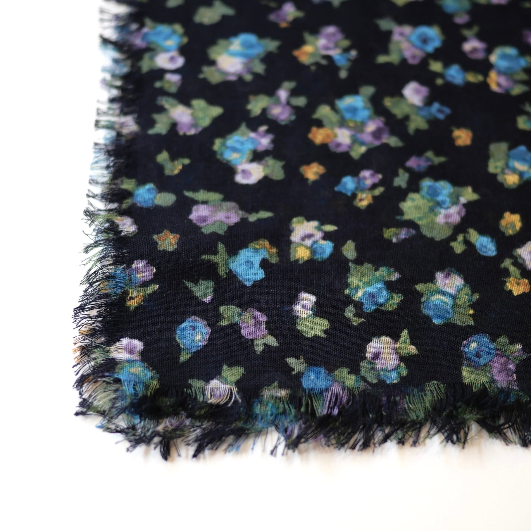 R&D.M.Co- no.2249b VINTAGE FLOWER PRINT GAUZE SHAWL Navy