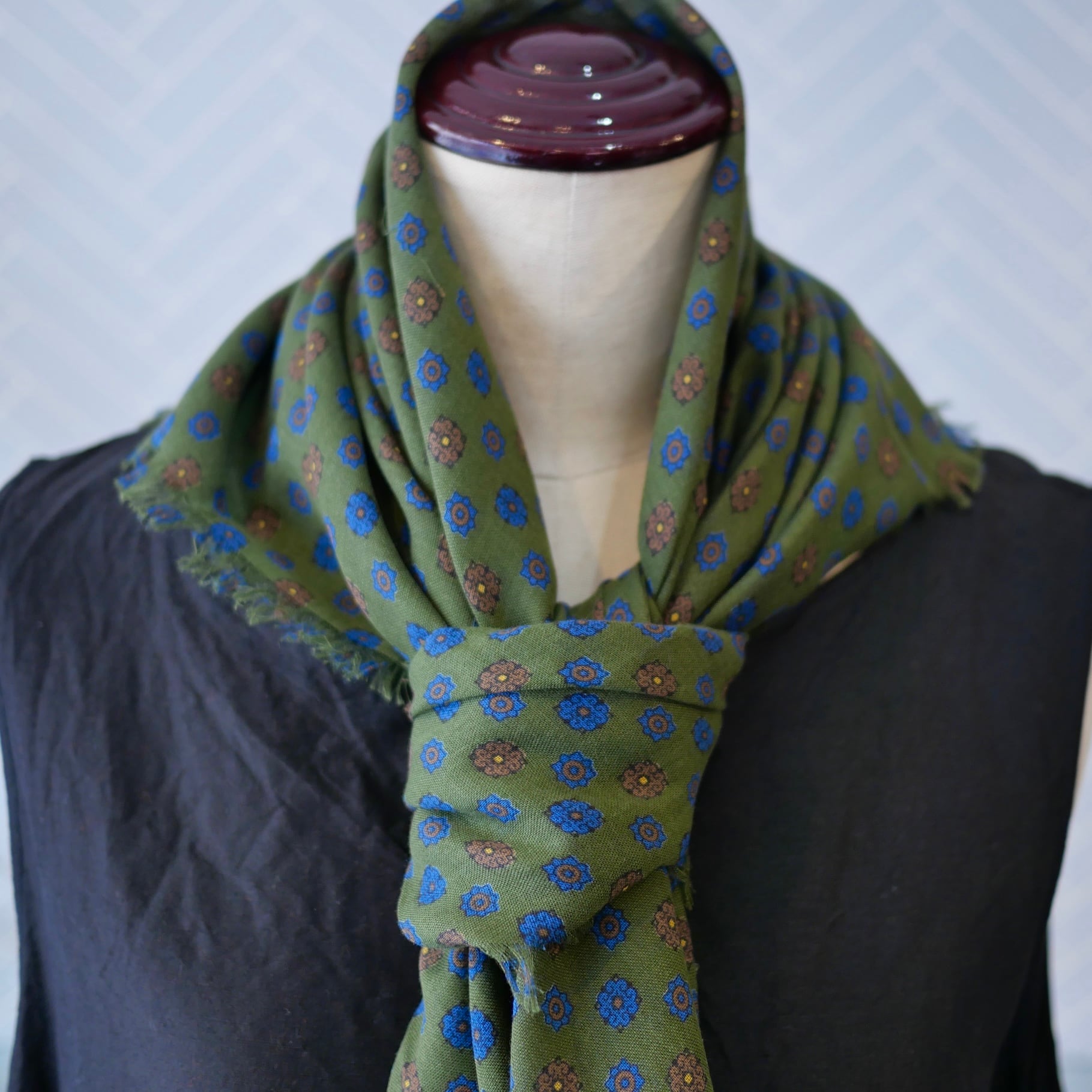 R&D.M.Co- no.3386b MOTIF PRINT GAUZE SHAWL Green